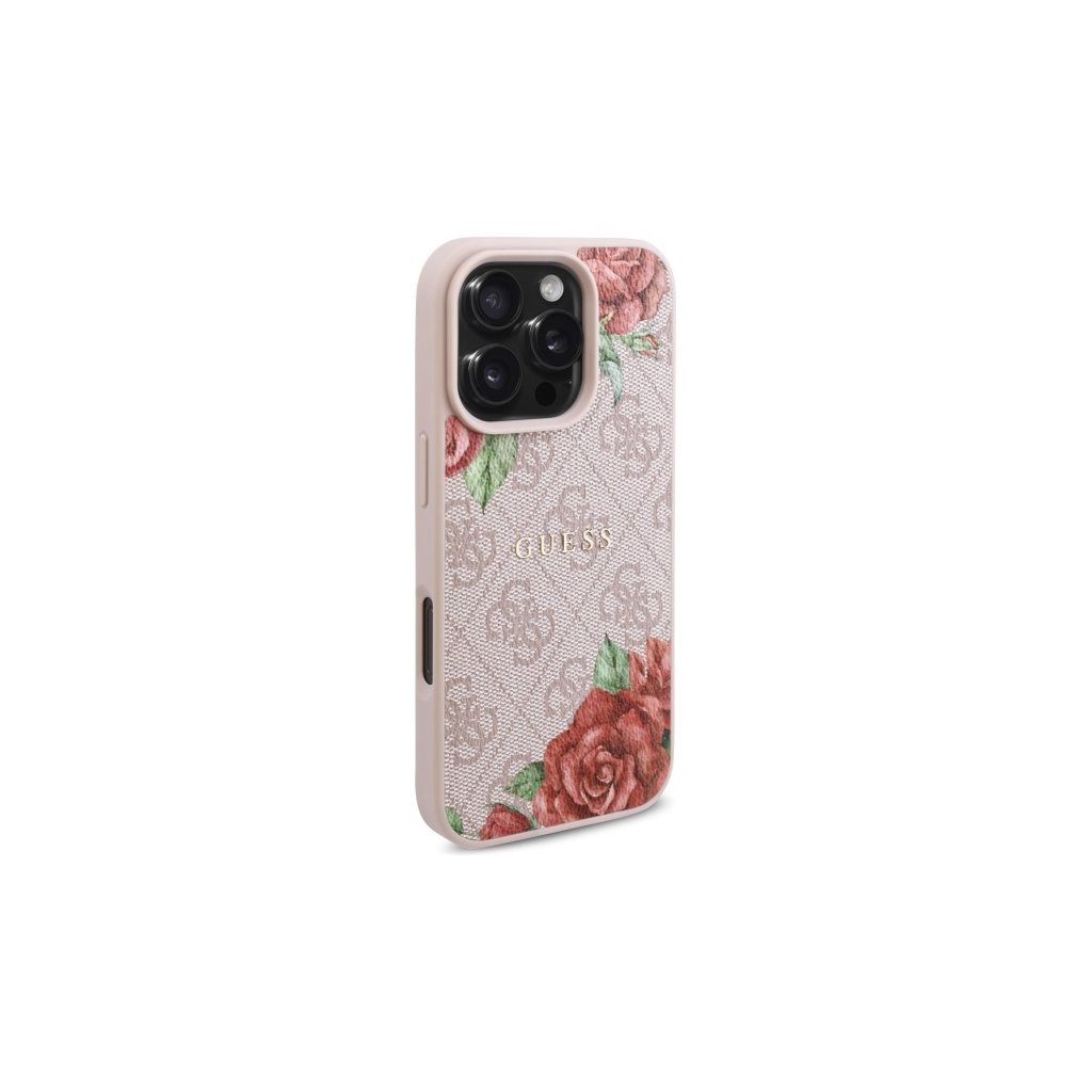 Guess Hardcase 4G Flower Print MagSafe iPhone 16 Pro ružová