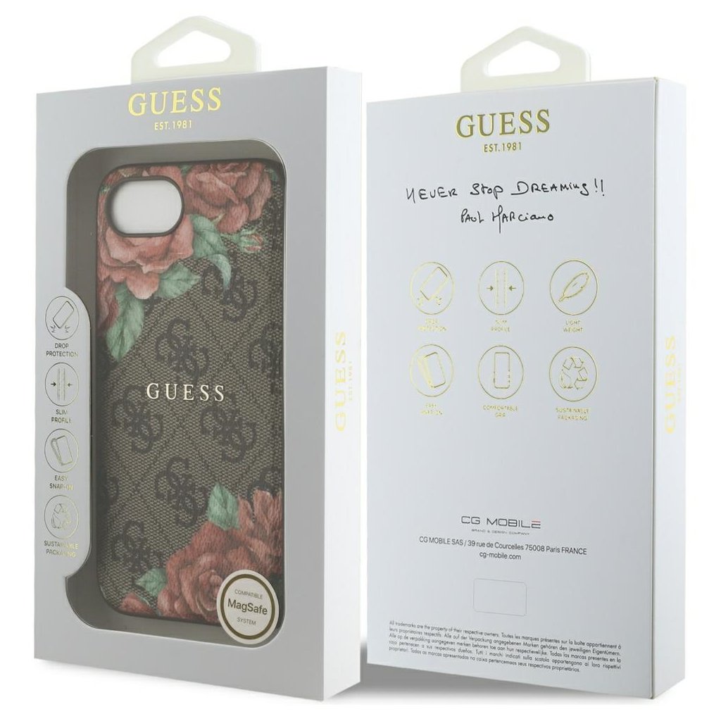 Guess Hardcase 4G Flower Print MagSafe iPhone 16e hnedé puzdro