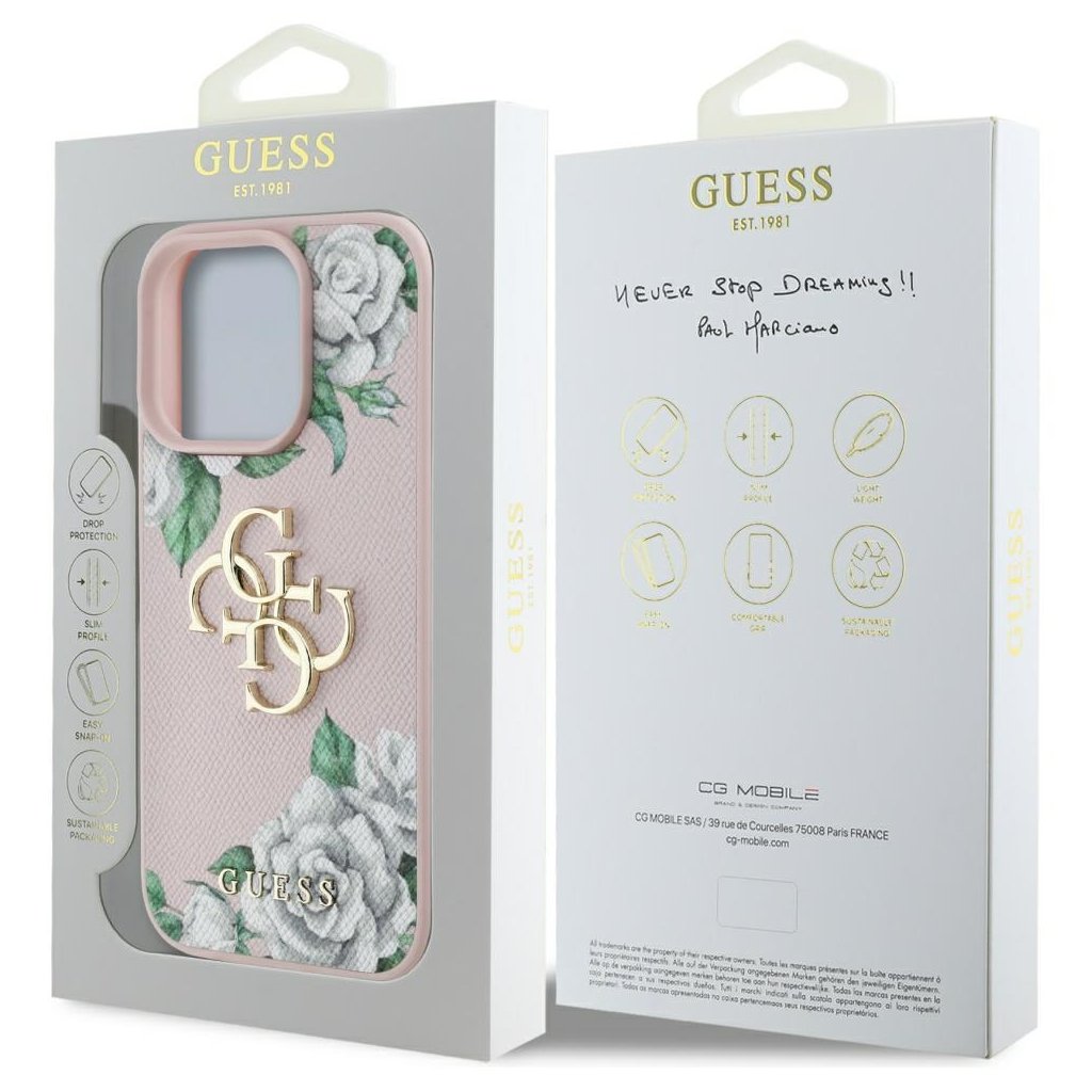 Guess Hardcase 4G Grained Roses Big Logo iPhone 16 Pro ružová