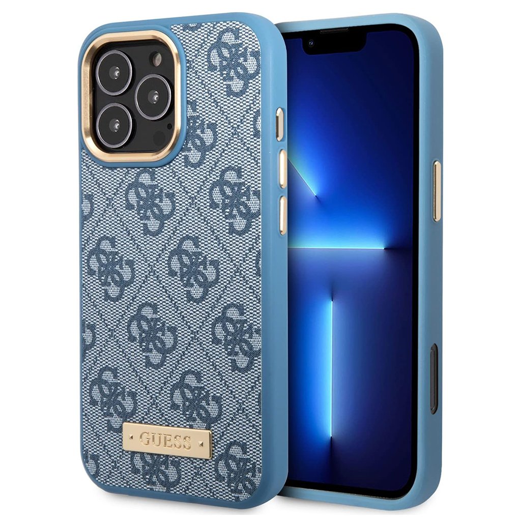Guess Hardcase 4G Logo Plate MagSafe iPhone 16 Pro modré