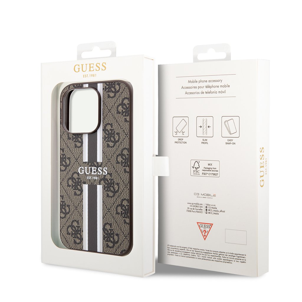 Guess Hardcase 4G Printed Stripes MagSafe iPhone 15 Pro Max Hnedý