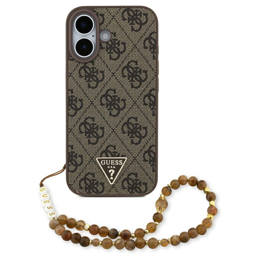 - Stylový korálkový remienok: Súčasťou balenia je aj remienok v hnedých odtieňoch s nápisom "GUESS", ktorý slúži ako praktické pútko na zápästie a zároveň ako módny doplnok.