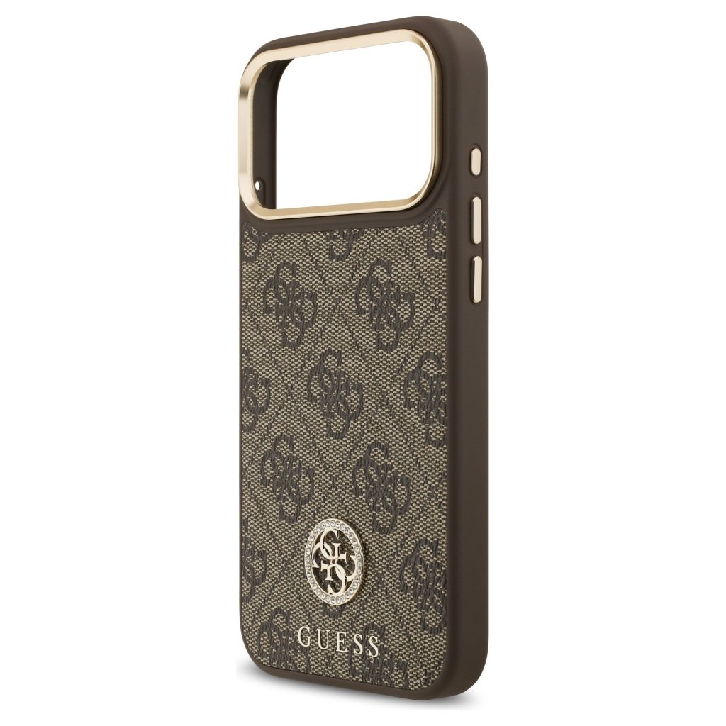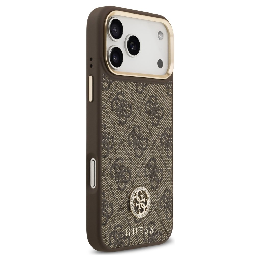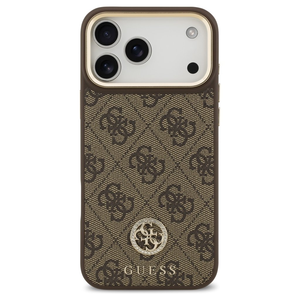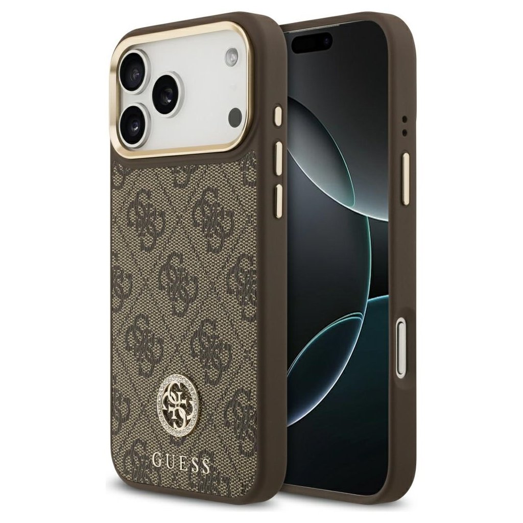 * **Typ produktu:** Ochranné puzdro (Hardcase) * **Značka:** Guess * **Model:** 4G Strass Logo MagSafe * **Kompatibilita:** iPhone 17 Pro Max * **Farba:** Hnedá * **Materiál:** Odolný plast (hardcase) * **Dizajn:** 4G monogram, logo Guess s kamienkami (strass), zlaté detaily * **Funkcie:** MagSafe kompatibilita, ochrana proti poškriabaniu a nárazom, presné výrezy * **Štýl:** Luxusný, elegantný, módnyDodatočné parametre