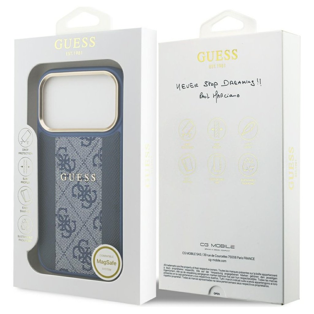 Guess Hardcase 4G Stripe MagSafe iPhone 17 Pro modré puzdro