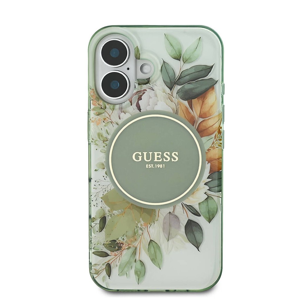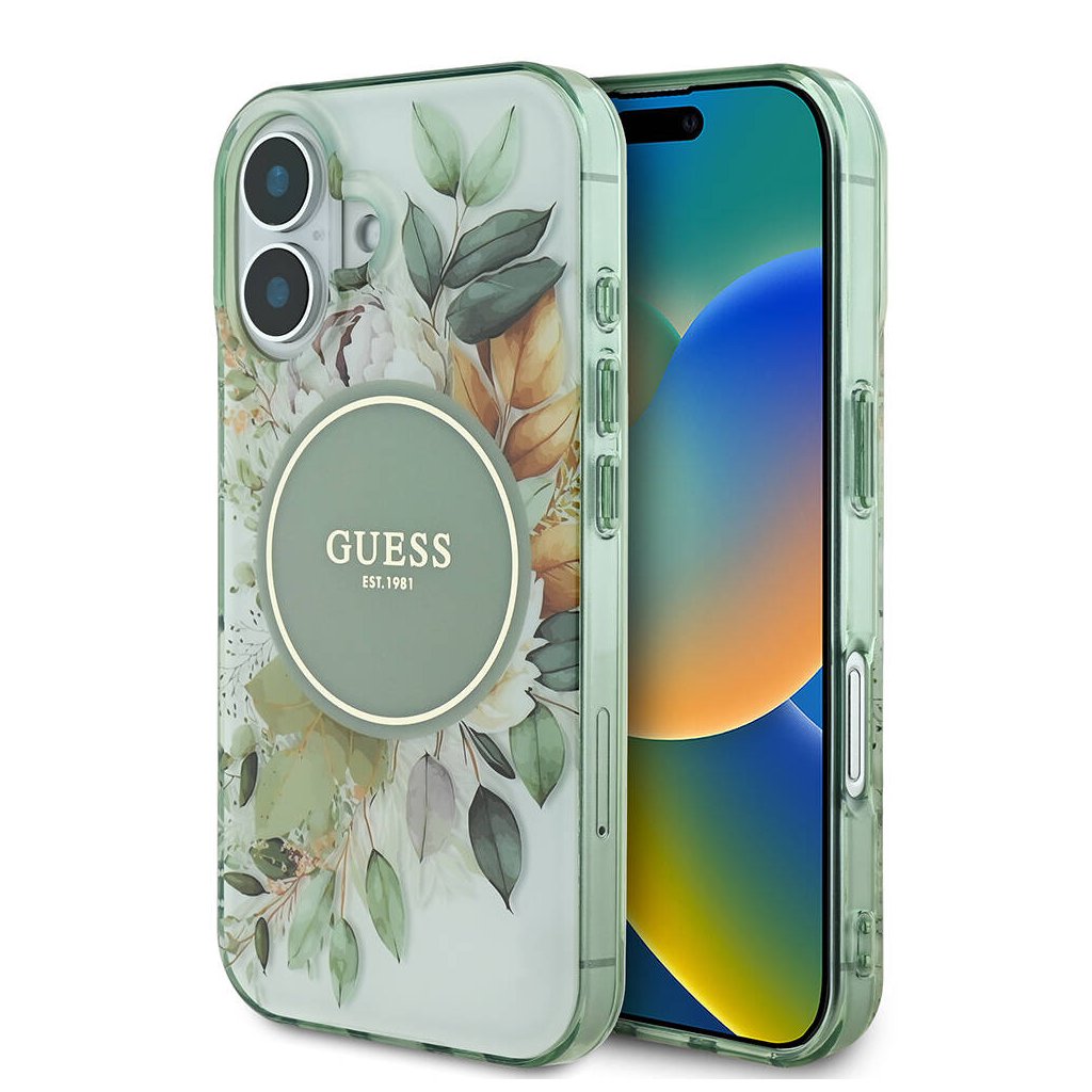 Guess IML Flower & Tonal Circle MagSafe iPhone 16 Plus zelená