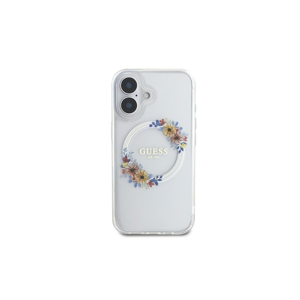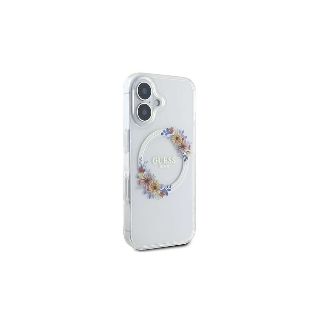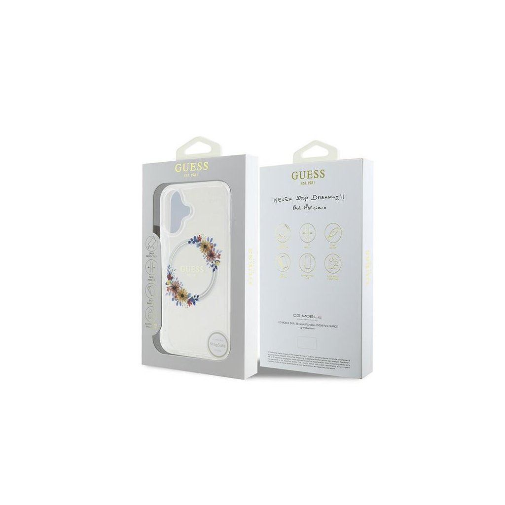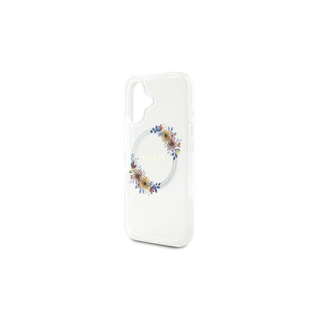 Guess IML Flowers Wreath MagSafe iPhone 16 Plus priehľadný