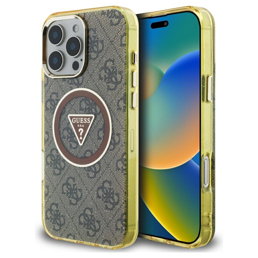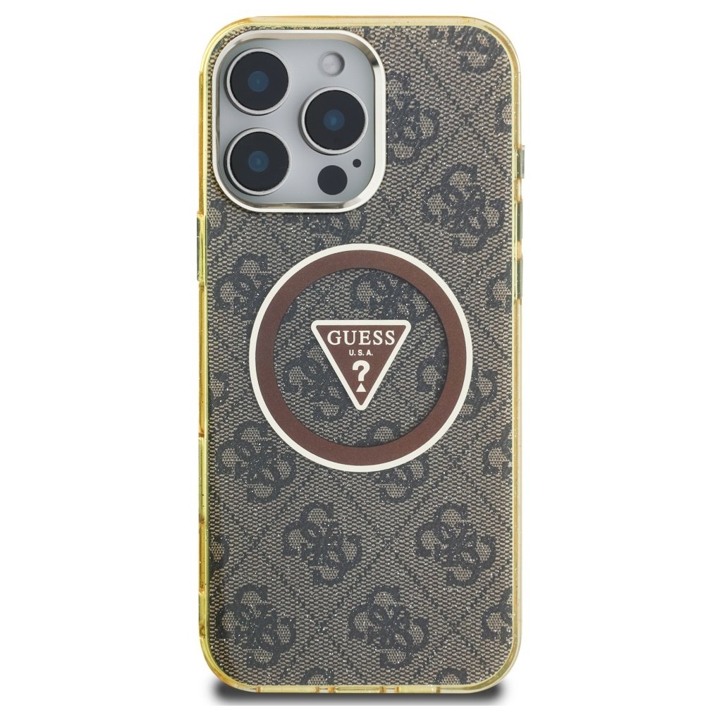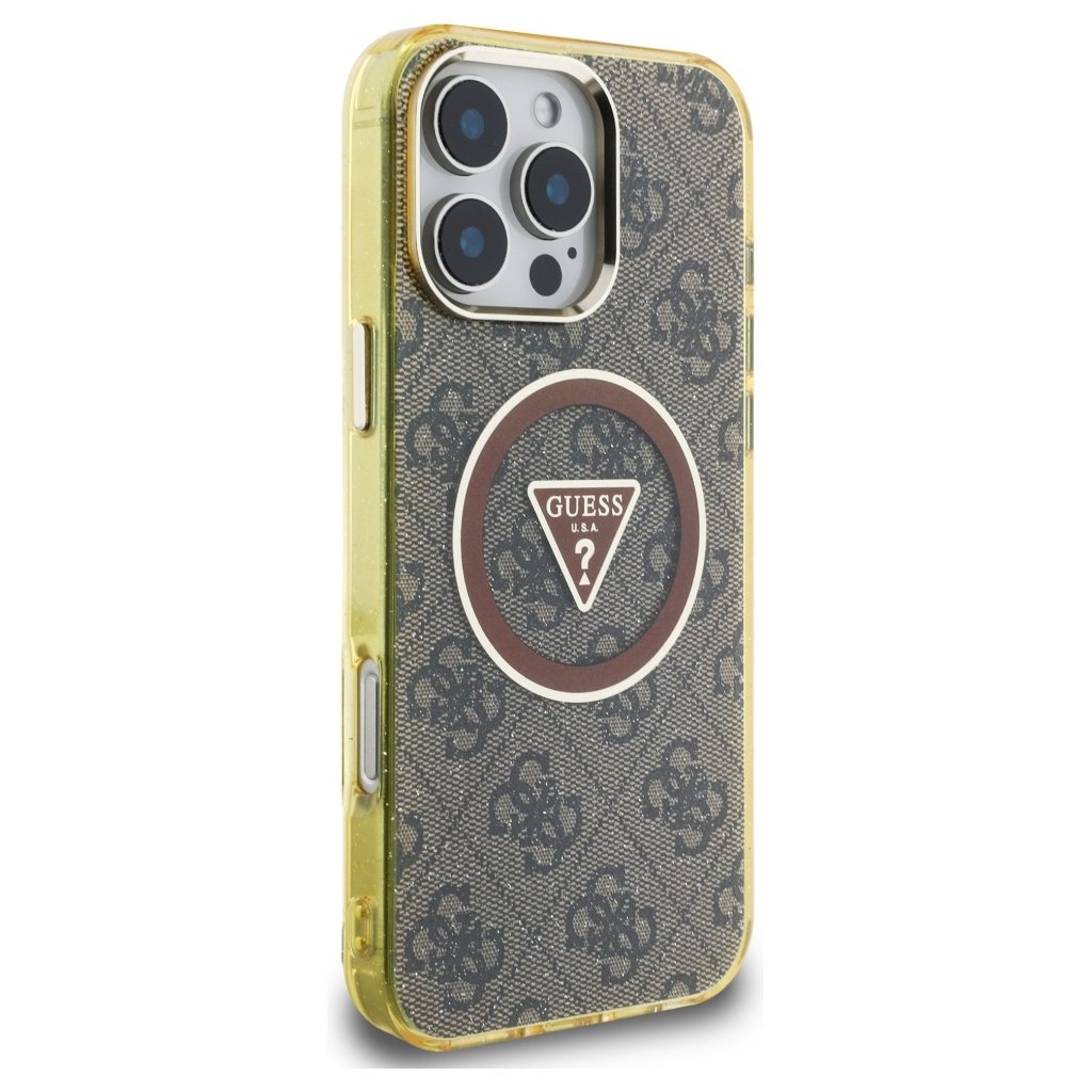 Guess IML Metal Glitter 4G Circle Triangle MagSafe iPhone 16 Pro hnedý