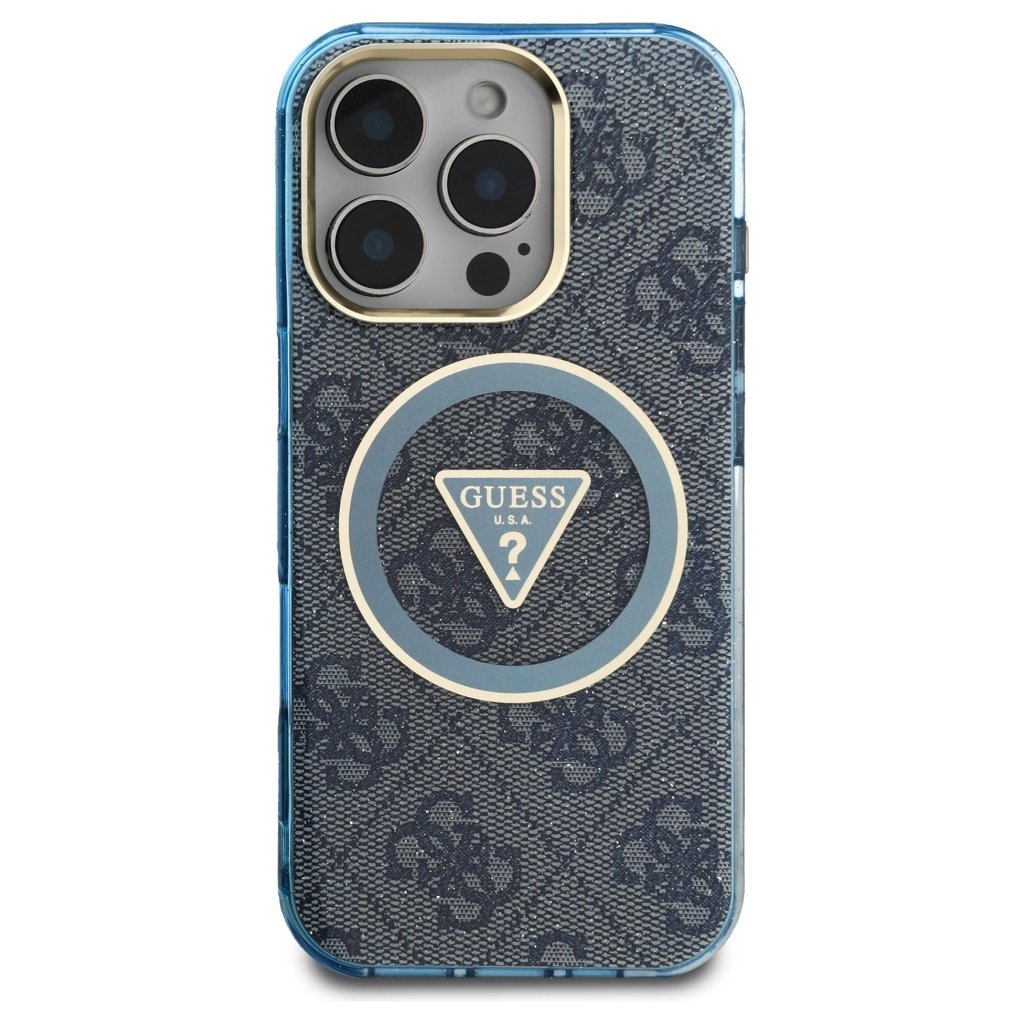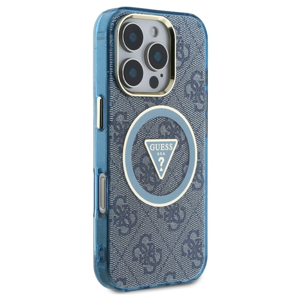 Guess IML Metal Glitter 4G Circle Triangle MagSafe iPhone 16 Pro Max modré puzdro
