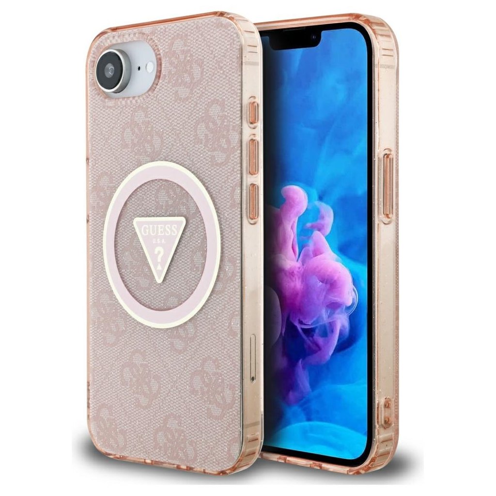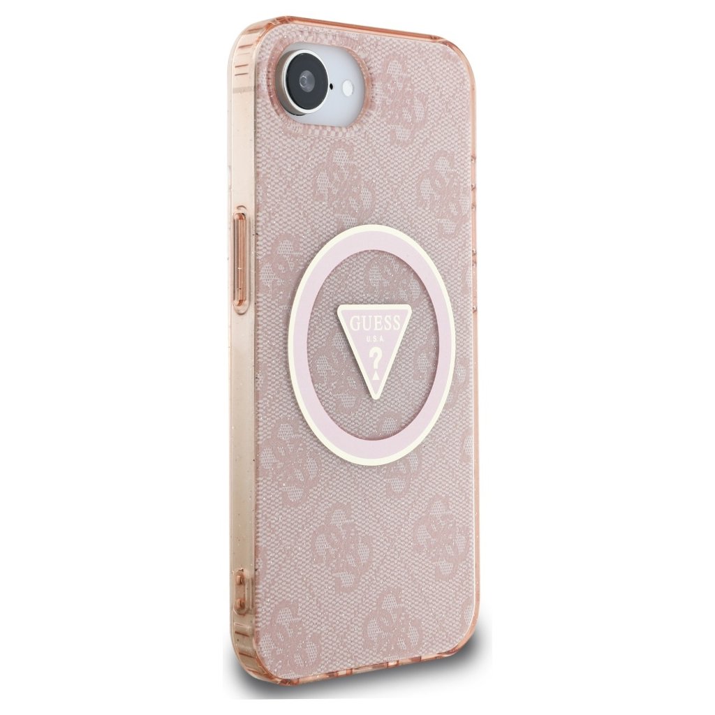 Guess IML Metal Glitter 4G Circle Triangle MagSafe iPhone 16e ružová