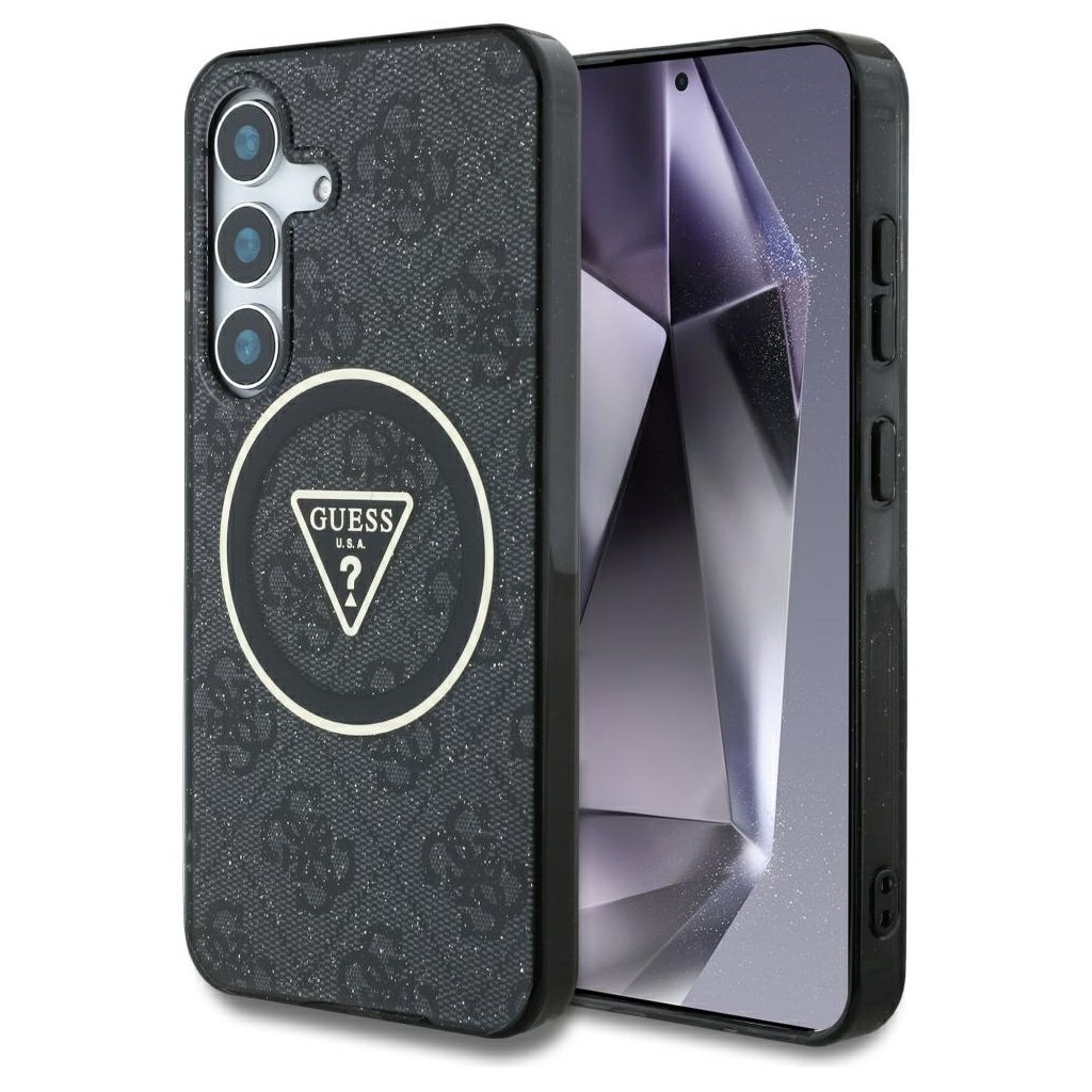 Guess IML Metal Glitter 4G Circle Triangle MagSafe Samsung Galaxy S25 čierna