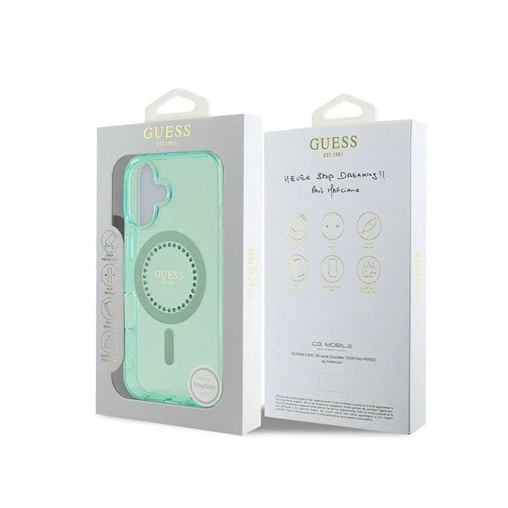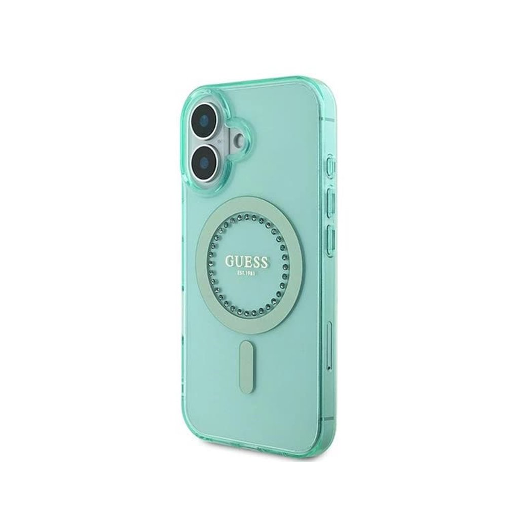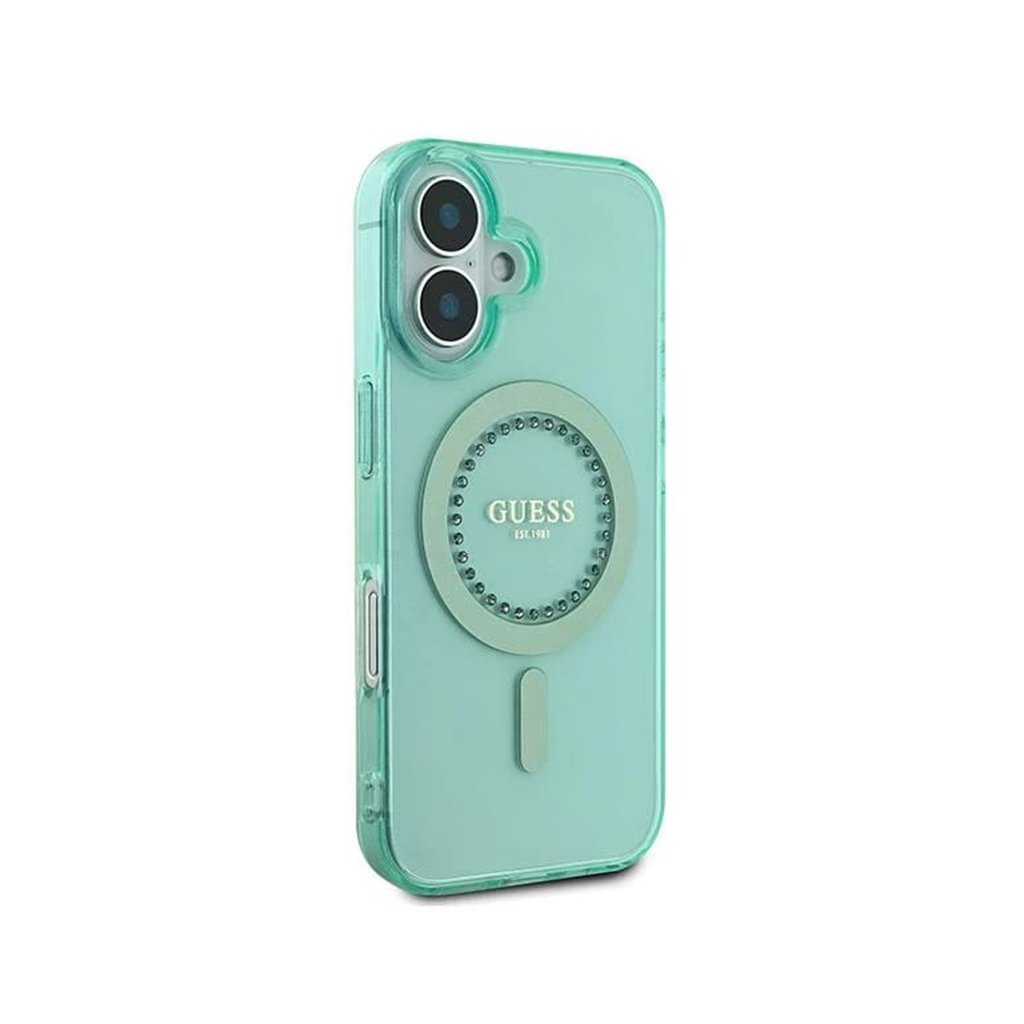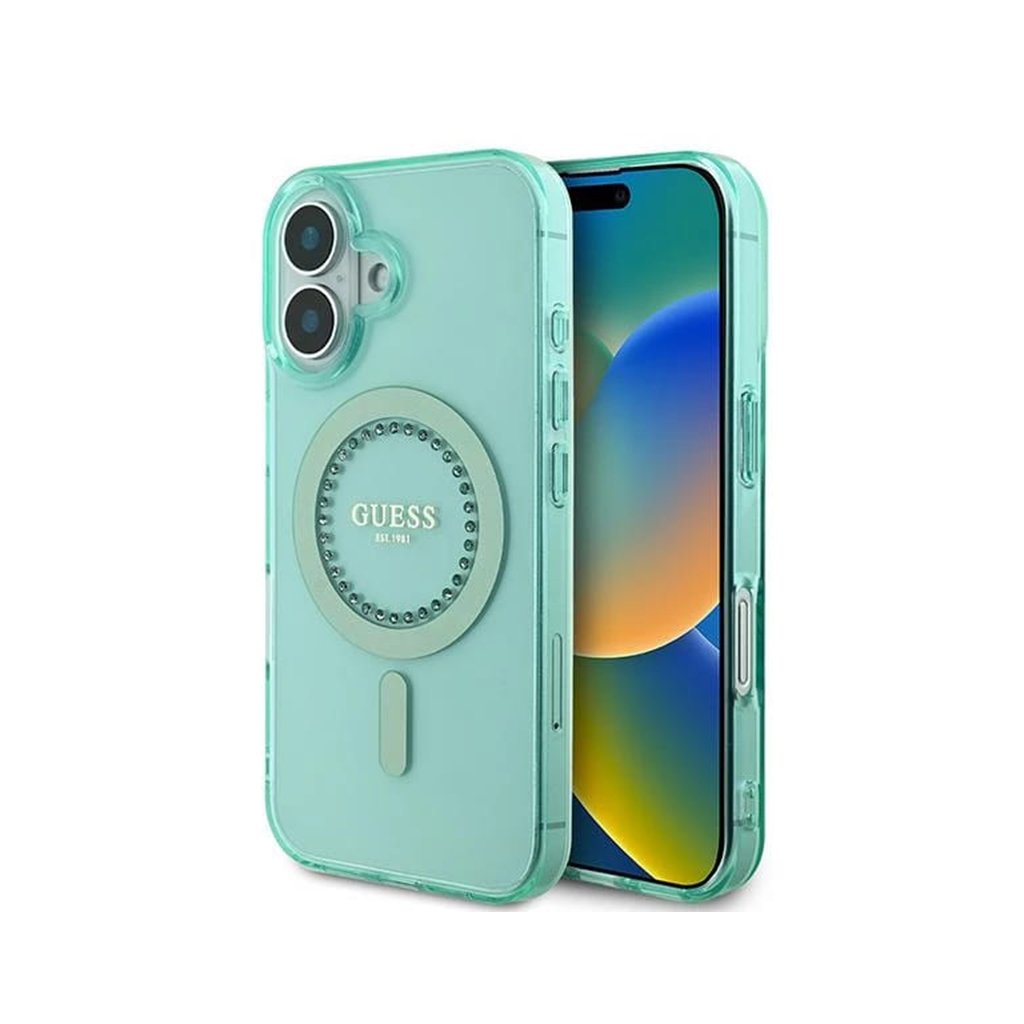 Guess IML Rhinestones MagSafe GUHMP16MPFTDTEN iPhone 16 Plus zelená