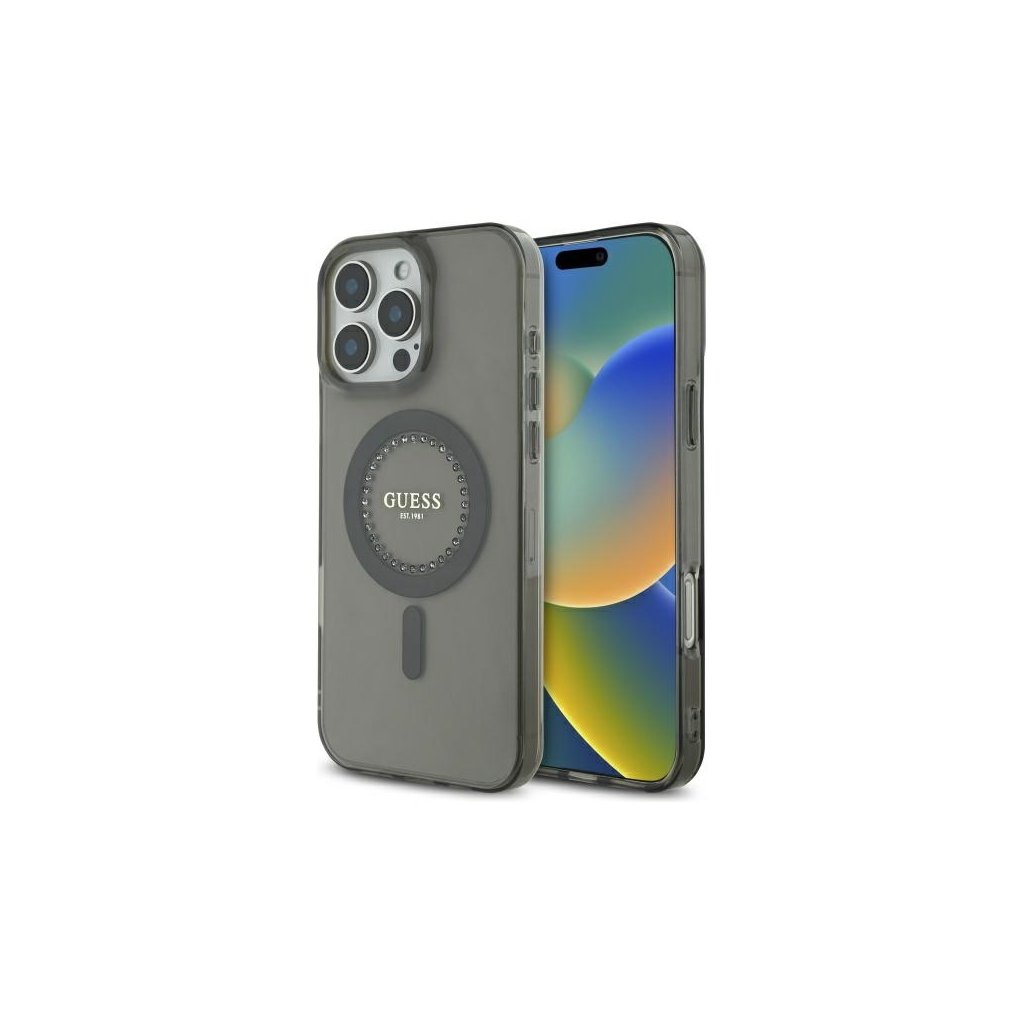 Guess IML Rhinestones MagSafe pre iPhone 16 Pro Max čiernaIkonický módny štýl pre váš telefón
