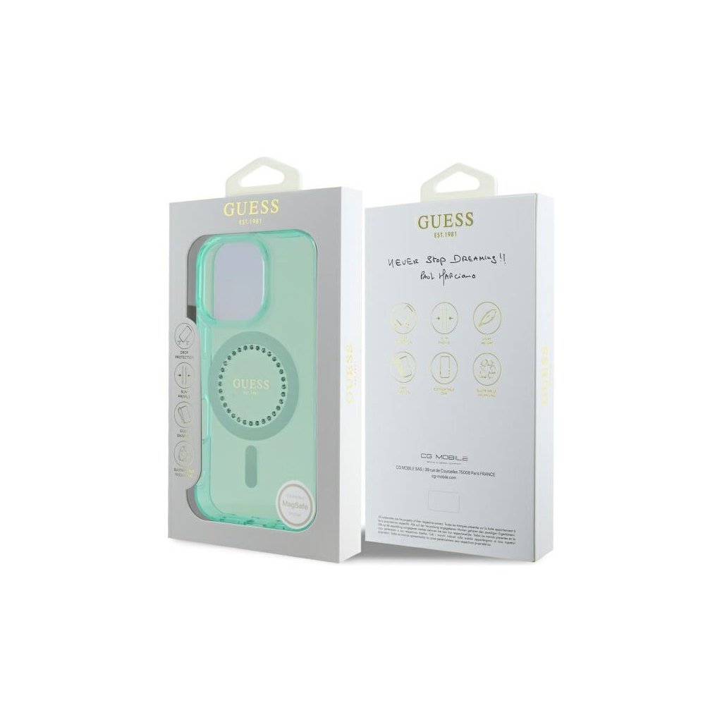 Guess IML Rhinestones MagSafe pre iPhone 16 Pro Max zelený