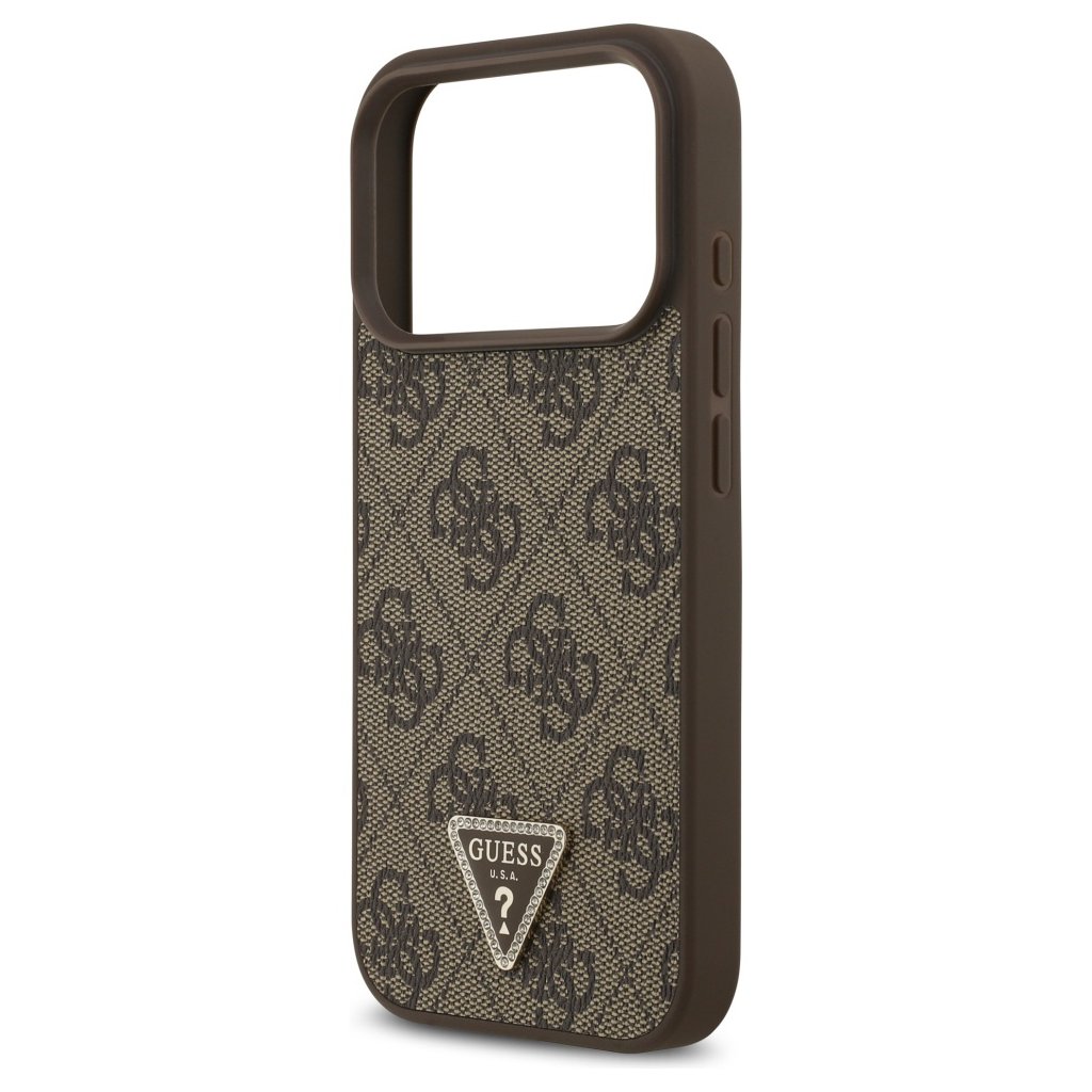 Guess Leather 4G Triangle Strass MagSafe pre iPhone 17 Pro – Hnedá