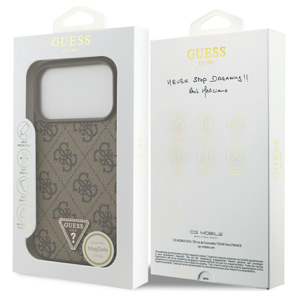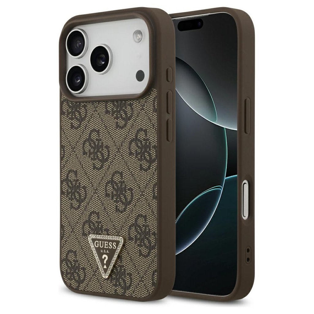 Guess Leather 4G Triangle Strass MagSafe iPhone 17 Pro Hnede puzdro