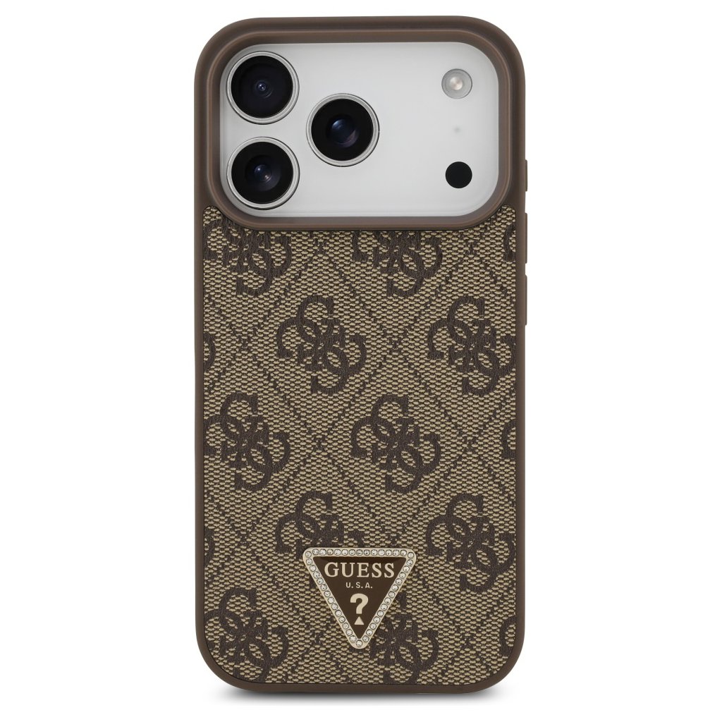 Guess Leather 4G Triangle Strass MagSafe iPhone 17 Pro Max hnede puzdro