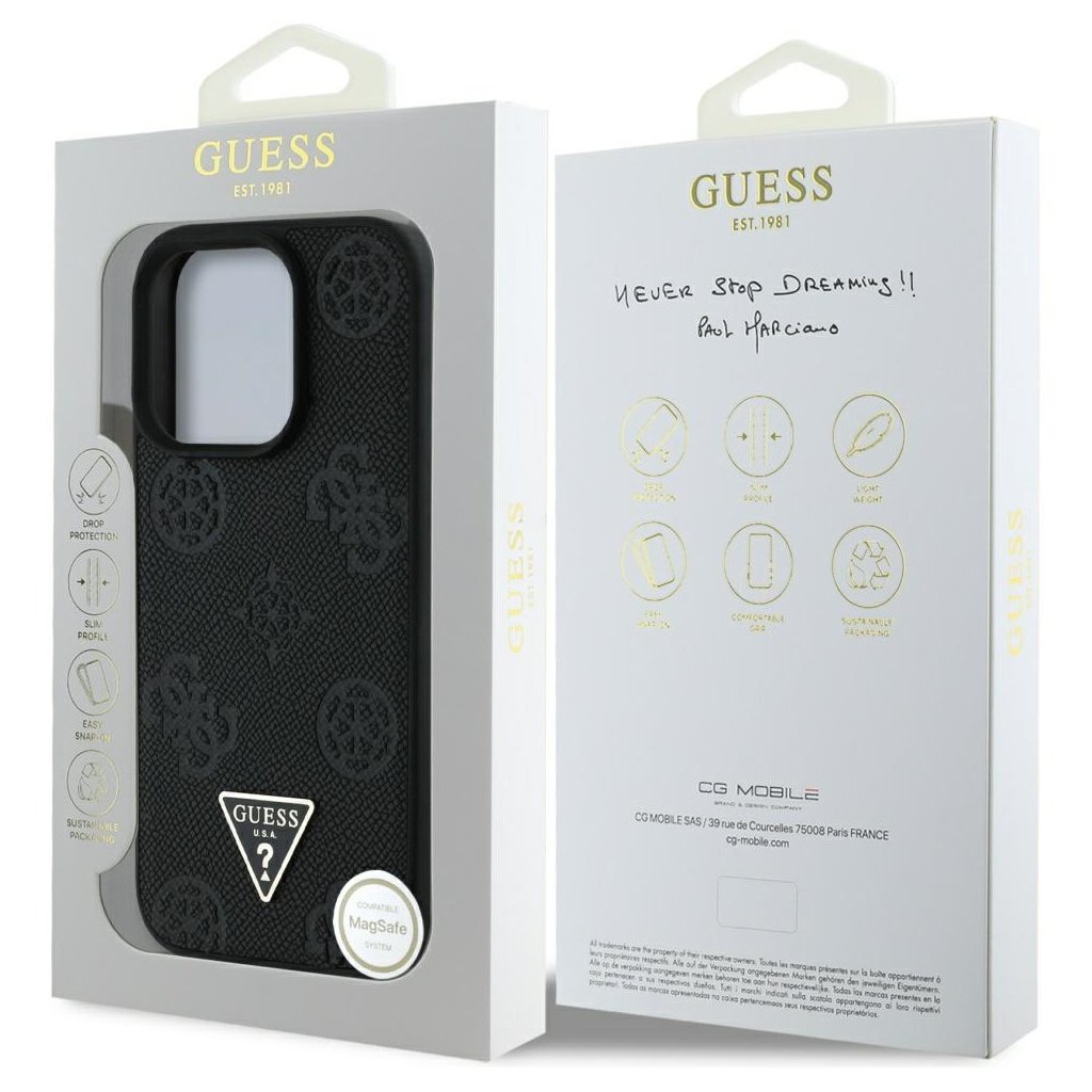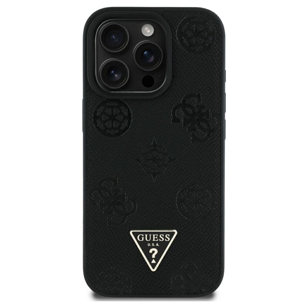 Guess Peony Grained Hot Stamp Triangle MagSafe iPhone 16 Pro Max čierna