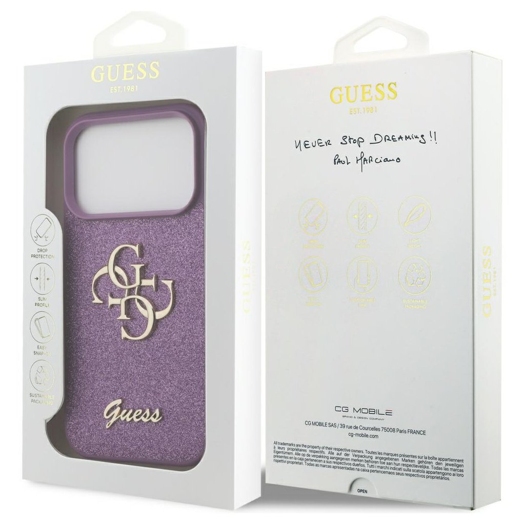 Puzdro Guess Fixed Glitter Big 4G pre iPhone 17 Pro Max – Lila