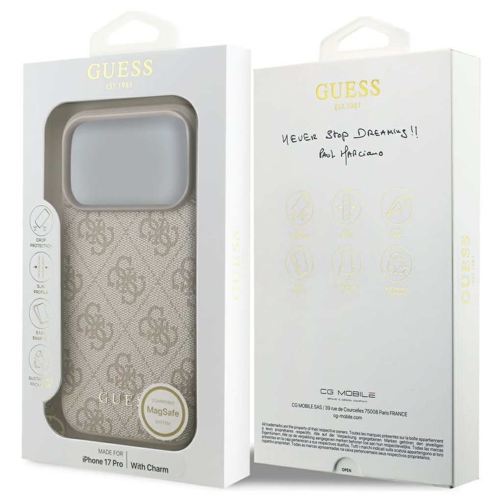 Představujeme Guess Hardcase 4G Charm Cradle MagSafe – dokonalé spojenie ikonického módneho štýlu a moderných funkcií pre váš iPhone 17 Pro. Táto značka, založená bratmi Marcianovými v roku 1981, sa celosvetovo preslávila svojimi inovatívnymi "stone-washed" džínami a provokatívnymi reklamami, ktoré definovali imidž supermodeliek 90. rokov. Guess sa rýchlo stal symbolom mladistvého, sexy a dobrodružného životného štýlu, a ich ikonické logo s otáznikom v trojuholníku je dnes globálne rozpoznateľným znakom luxusu a sebavedomého módneho vkusu.