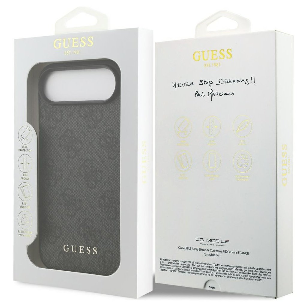 Predstavujeme vám exkluzívne ochranné puzdro Guess Hardcase 4G Classic, ktoré je navrhnuté tak, aby dokonale doplnilo váš iPhone 17 Air. Tento štýlový doplnok v sebe snúbi ikonický dizajn značky Guess s praktickou ochranou pre váš telefón.