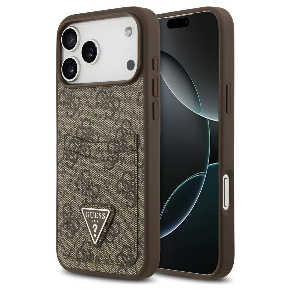 Guess Puzdro 4G Double Card Triangle iPhone 17 Pro Max hnedé