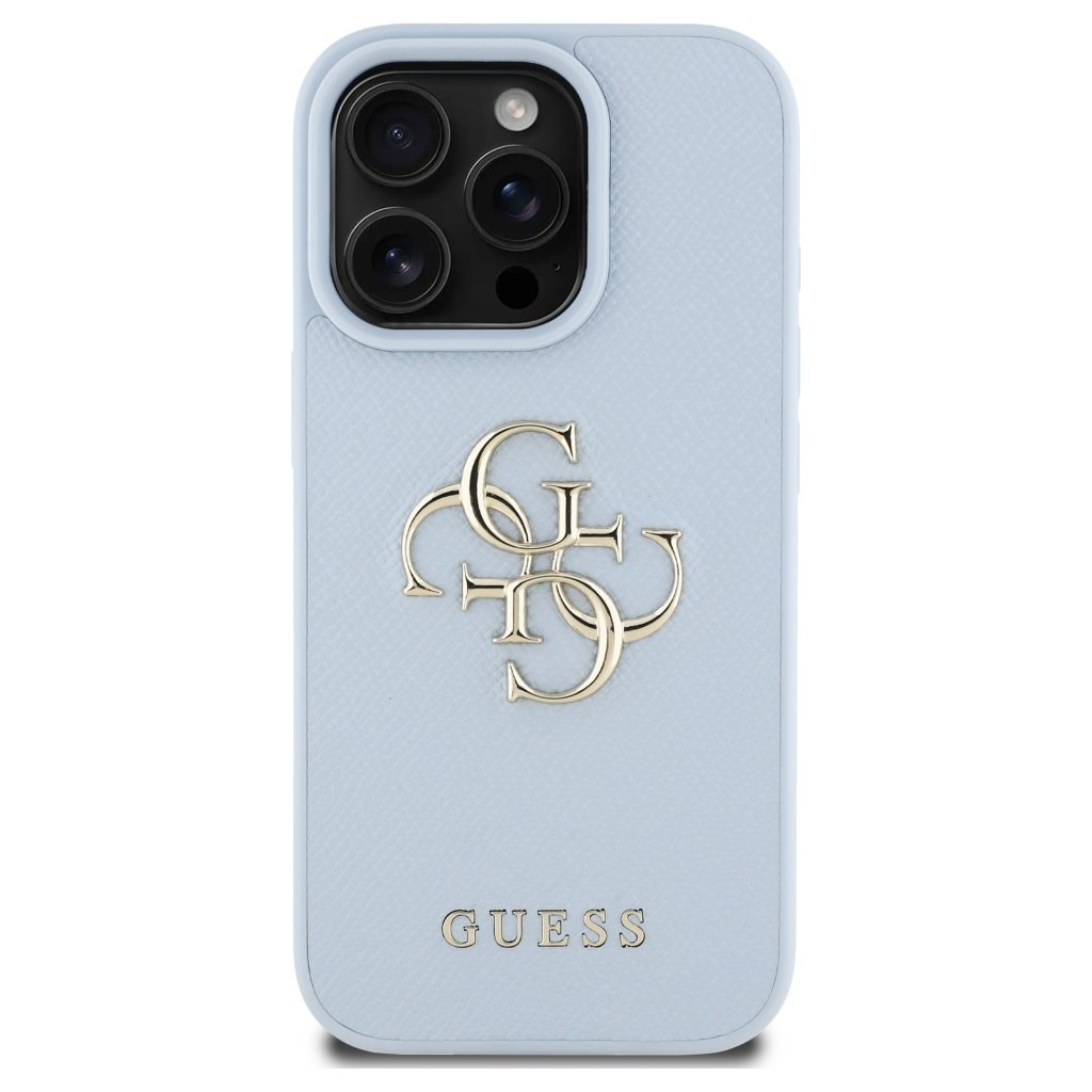 Guess Puzdro Grained Big 4G Logo Small Classic Logo iPhone 16 Pro modré