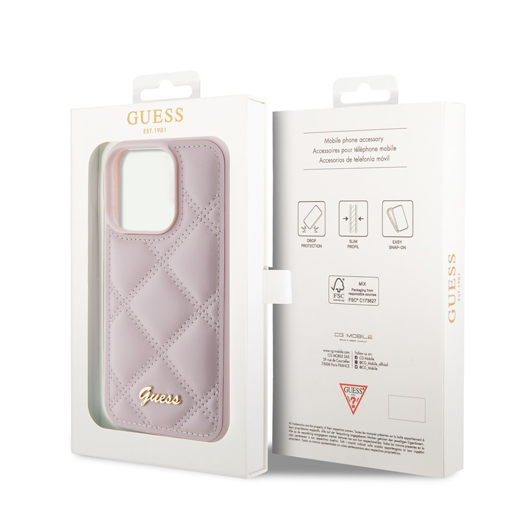 Guess Quilted Metal Logo iPhone 15 Pro Max ružový