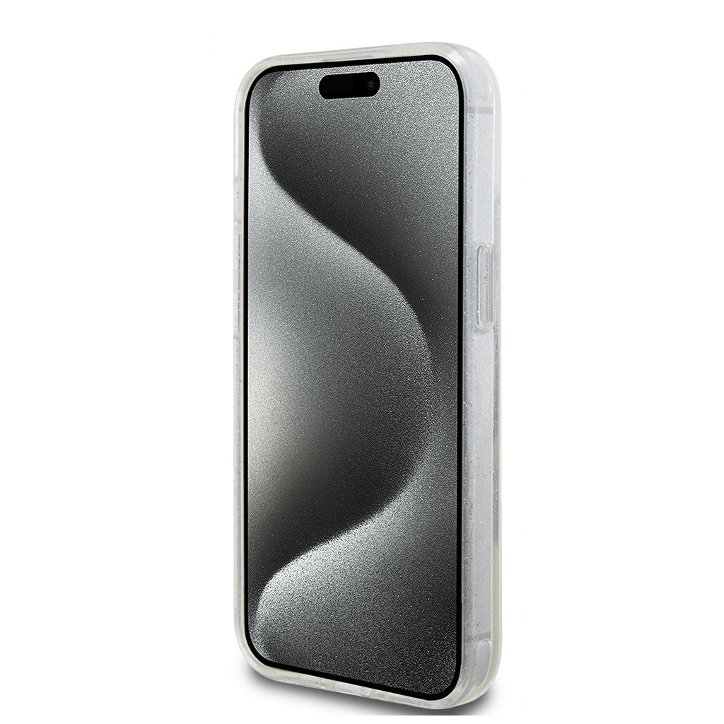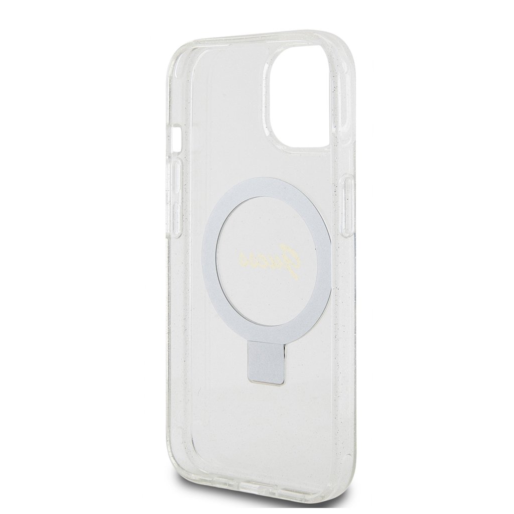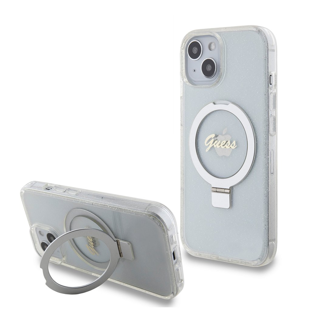 Guess Ring Stand Script Glitter MagSafe iPhone 15 Priehľadný