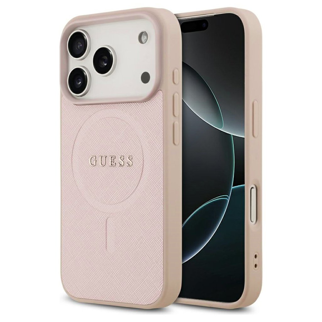 * **Typ produktu:** Ochranné puzdro na mobilný telefón * **Značka:** Guess * **Kolekcia:** Saffiano Classic Logo * **Farba:** Ružová * **Materiál:** Imitácia Saffiano kože (textúrovaný povrch) * **Funkcia:** Kompatibilné s technológiou MagSafe * **Dizajn:** Elegantný s vyrazeným logom Guess * **Určené pre model telefónu:** iPhone 17 Pro Max * **Kód produktu:** GUHMP17XPSAHMCPDodatočné parametre