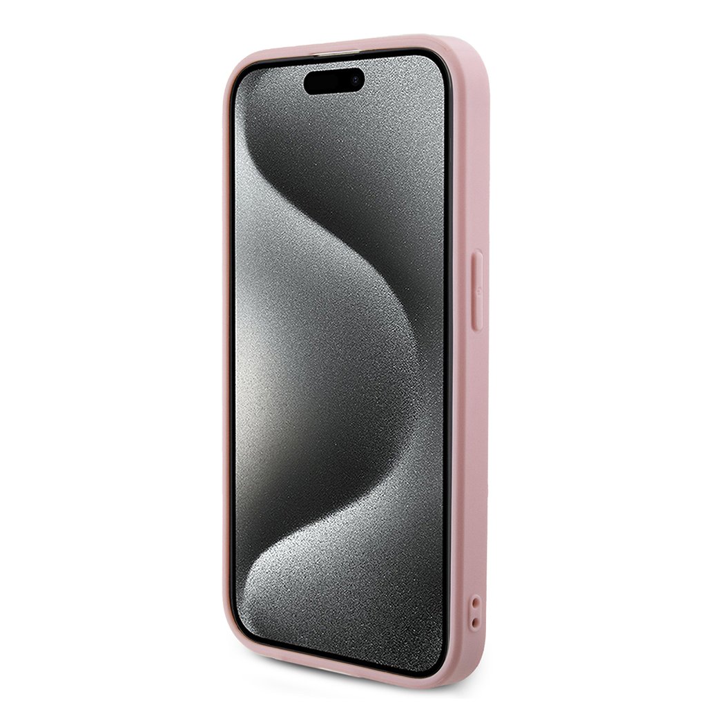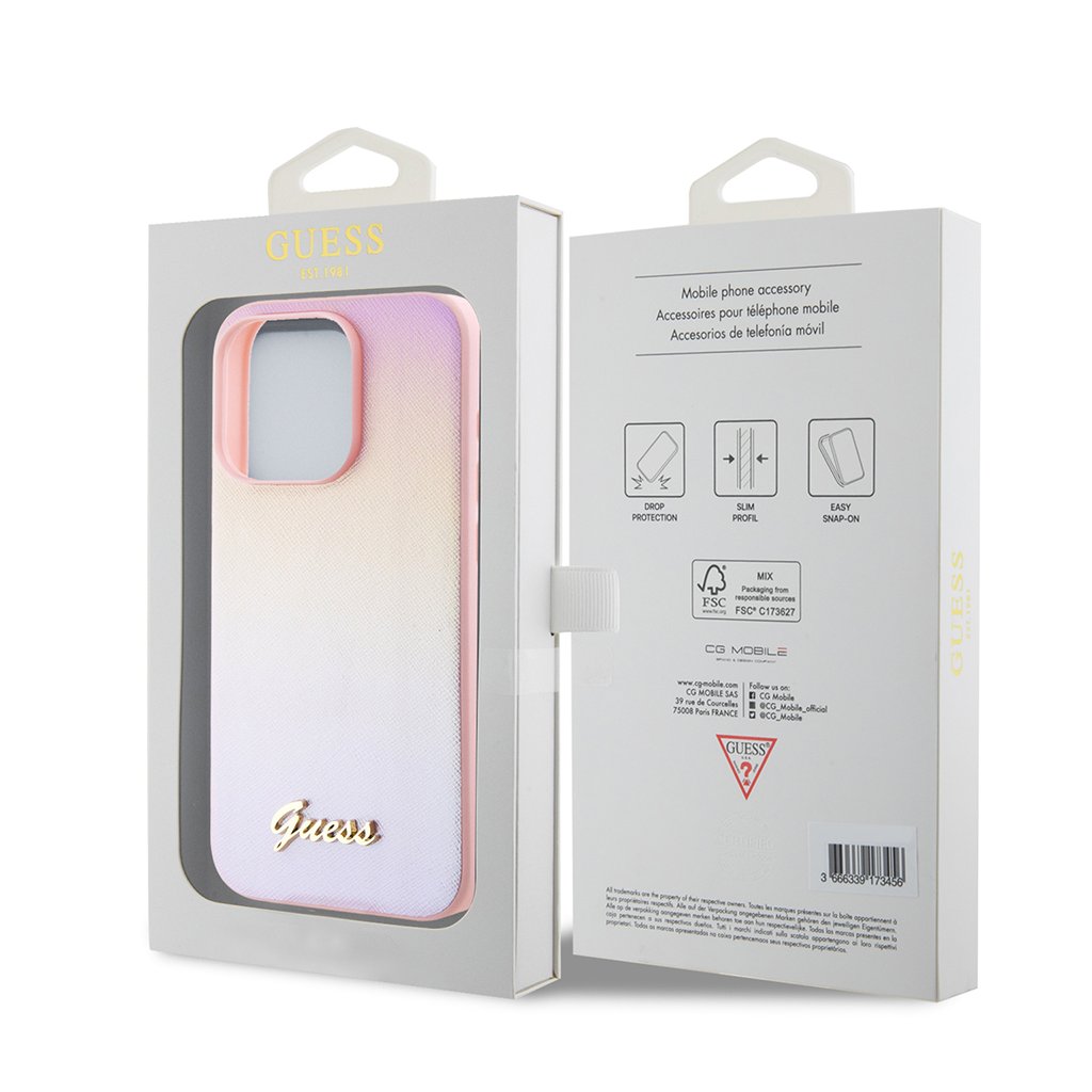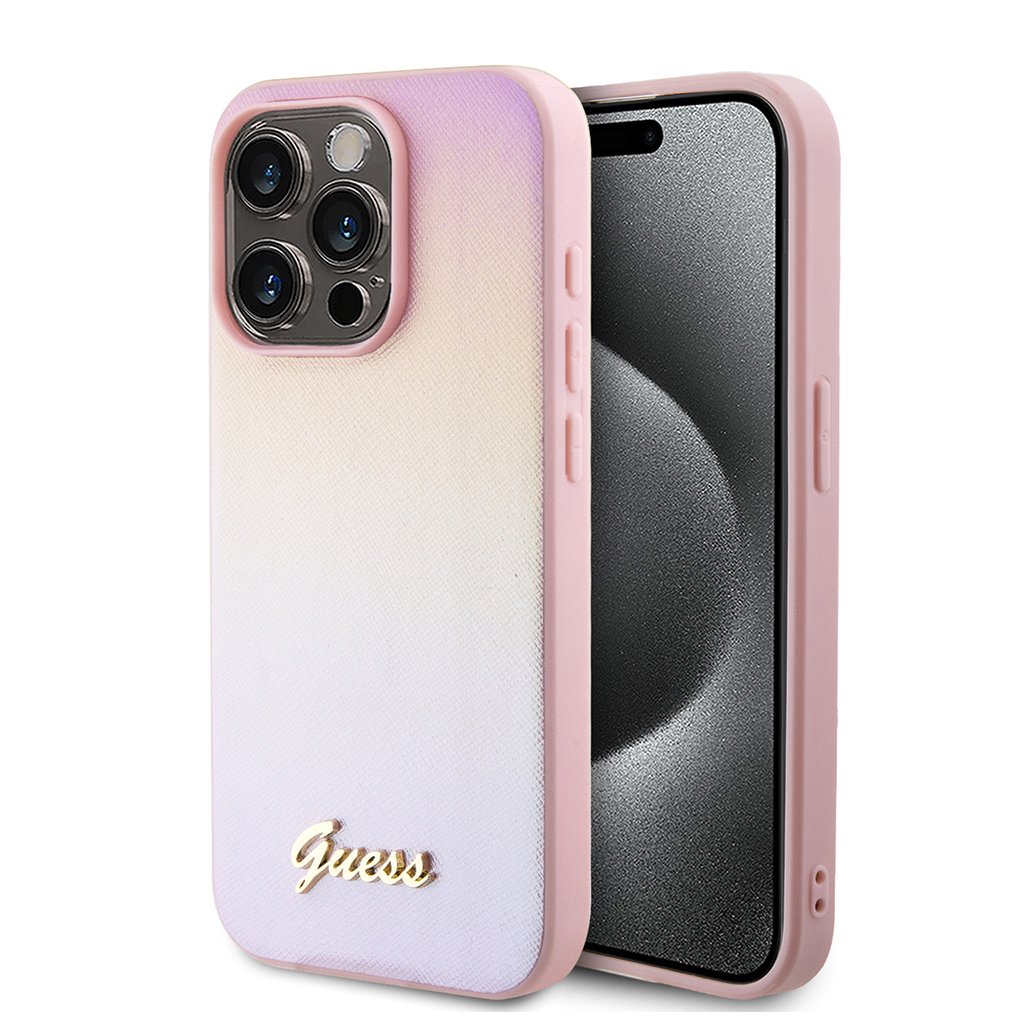 Guess Saffiano Iridescent Script puzdro iPhone 15 Pro ružové