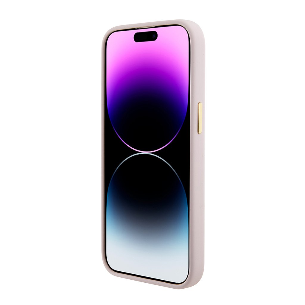 Guess Silicone Script Metal Logo & Frame iPhone 15 svetloružová