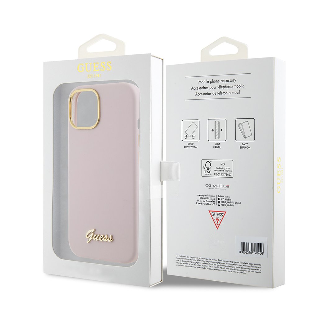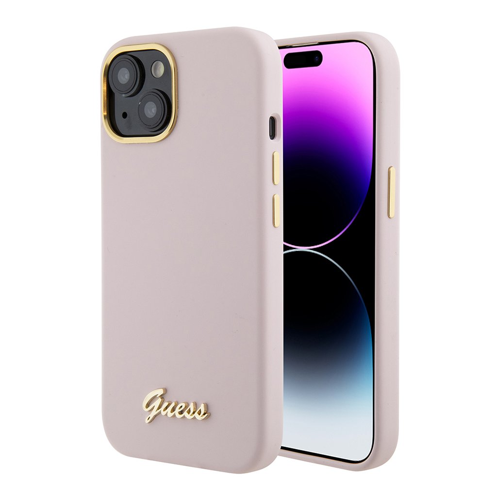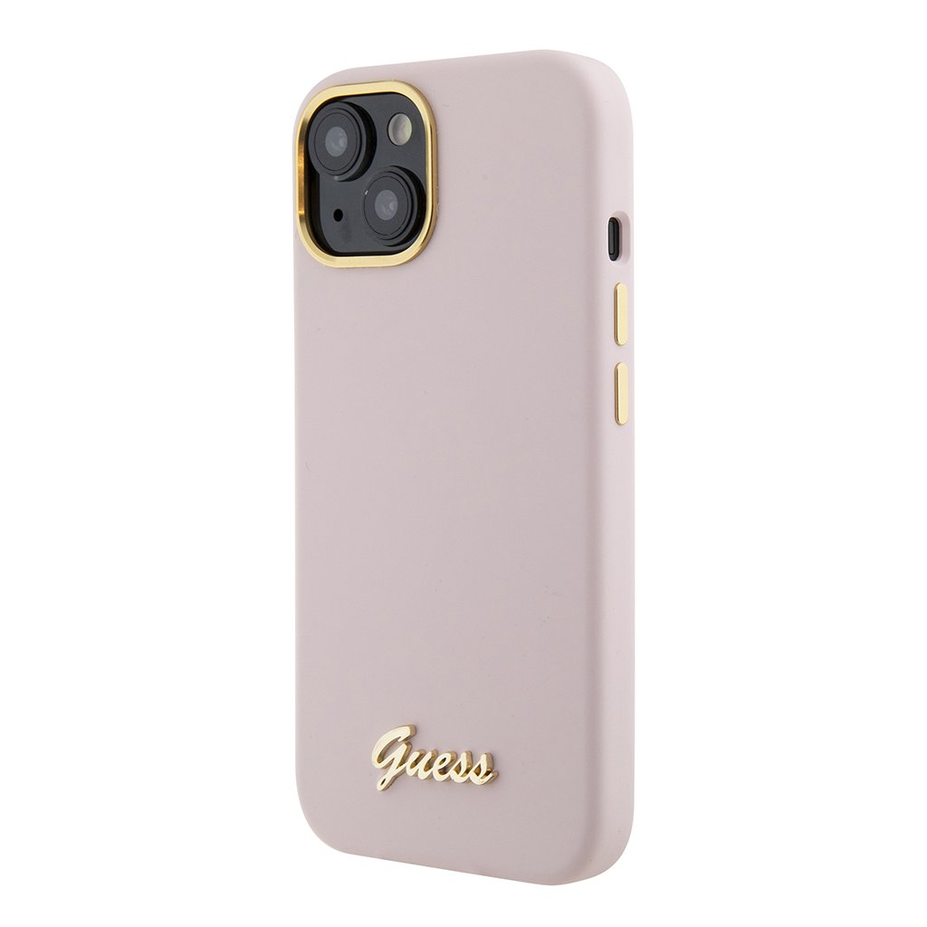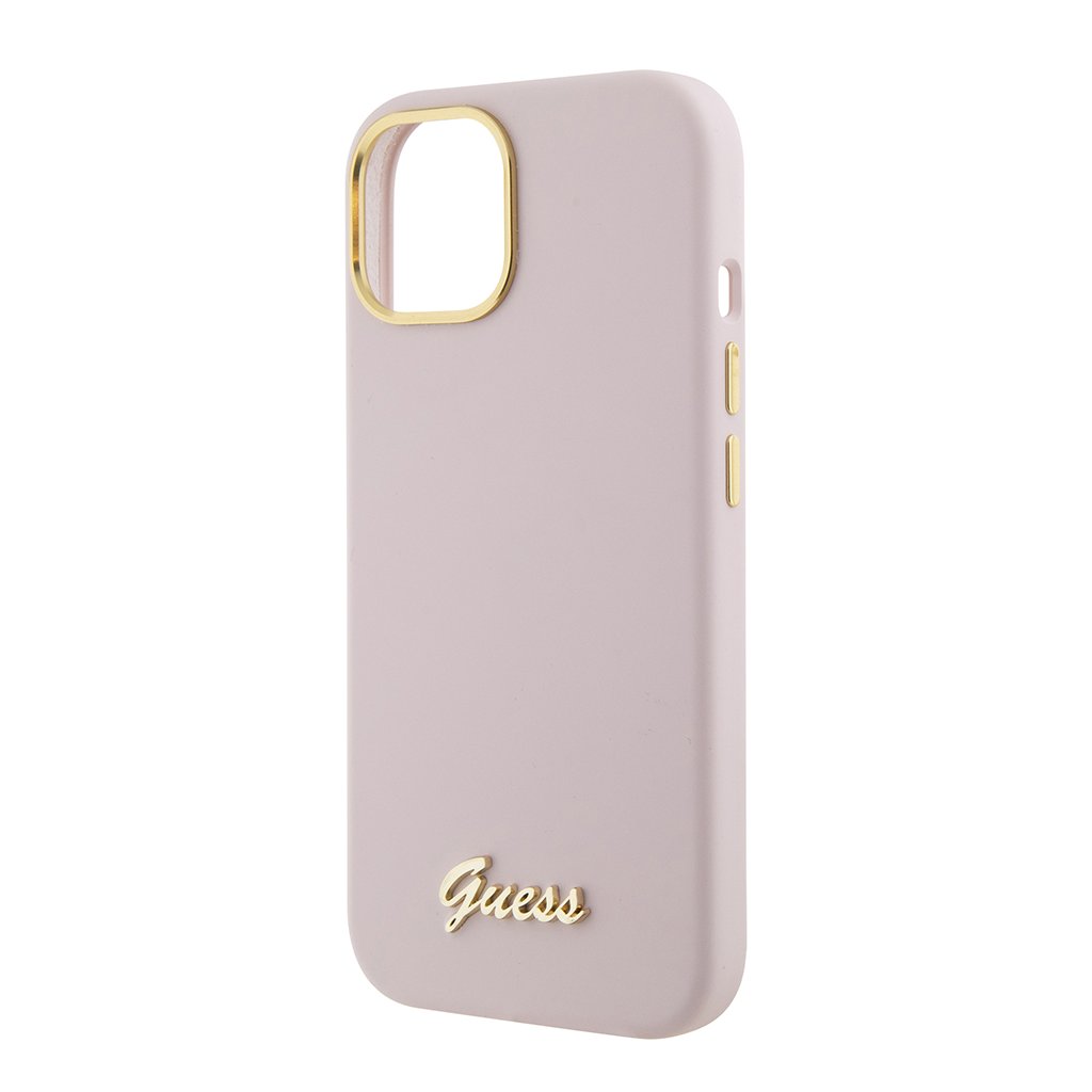 Guess Silicone Script Metal Logo & Frame iPhone 15 svetloružováPopis značky Guess: