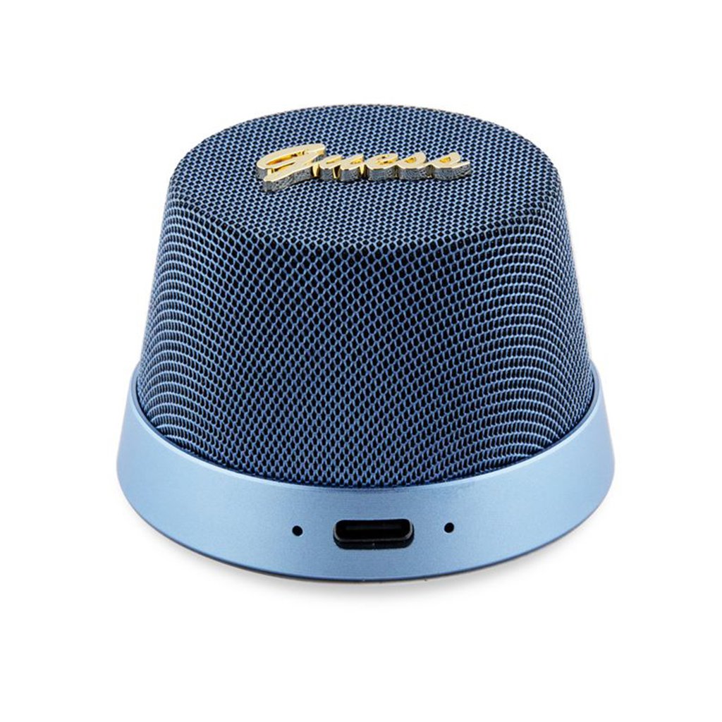 Predstavujeme **Guess magnetický bezdrôtový reproduktor**, ktorý dokonale kombinuje špičkový zvuk s ikonickým dizajnom a praktickosťou. Tento elegantný doplnok je navrhnutý pre milovníkov hudby a štýlu, ktorí ocenia **kvalitný zvukový zážitok** a **luxusné prevedenie**. Reproduktor Guess sa pýši **moderným a kompaktným dizajnom** v atraktívnej modrej farbe. Jeho kónický tvar s jemnou modrou sieťovinou na hornej časti a svetlomodrou metalickou základňou vytvára **harmonický celok**. Dominantným prvkom je **zlaté logo Guess** vo forme skriptu, ktoré je elegantne umiestnené na hornej mriežke reproduktora, čo podčiarkuje jeho **luxusný charakter**. Vďaka **magnetickému uchyteniu** sa reproduktor ľahko pripevní k zadnej strane vášho MagSafe kompatibilného iPhonu, čo umožňuje pohodlné sledovanie obsahu alebo počúvanie hudby bez nutnosti držania telefónu. Možno ho však používať aj ako **samostatný prenosný reproduktor**.- Tento bezdrôtový reproduktor je vybavený **Bluetooth verziou 5.3**, ktorá zaisťuje **stabilné a rýchle pripojenie**.