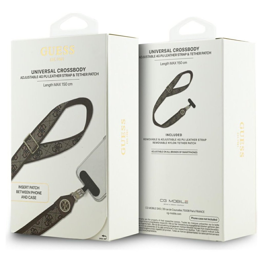 Guess Strap Tether Patch 4G Strass Metal Logo univerzálne nastaviteľné hnedé puzdro