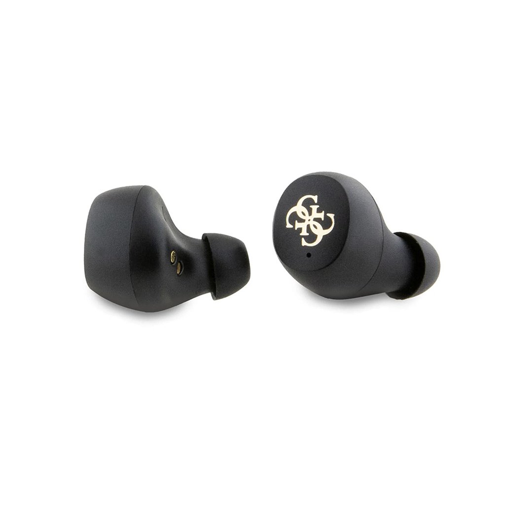 Ponorte sa do sveta prémiového zvuku a ikonického štýlu s bezdrôtovými slúchadlami Guess Wireless Earbuds 4G Metal. Tieto slúchadlá predstavujú dokonalé spojenie modernej technológie a luxusného dizajnu, ktoré ocení každý milovník módy a kvalitnej hudby. Dizajn a eleganciaSlúchadlá Guess Wireless Earbuds 4G Metal sa pýšia sofistikovaným vzhľadom. Samotné slúchadlá sú vyhotovené v elegantnej čiernej farbe a zdobí ich zlaté logo Guess, ktoré symbolizuje prestíž a zmysel pre detail. Ich ergonomický tvar zaisťuje pohodlné a stabilné usadenie v uchu, ideálne pre celodenné nosenie. Nabíjacia dokovacia stanica je skutočným dizajnovým skvostom. Jej oválny tvar je potiahnutý modrým materiálom s ikonickým 4G vzorom Guess, pripomínajúcim džínsovinu, čo jej dodáva jedinečný a rozpoznateľný vzhľad. Zlaté logo Guess je decentne umiestnené aj na vrchnej strane puzdra, podčiarkujúc celkový luxusný dojem. Kľúčové parametre