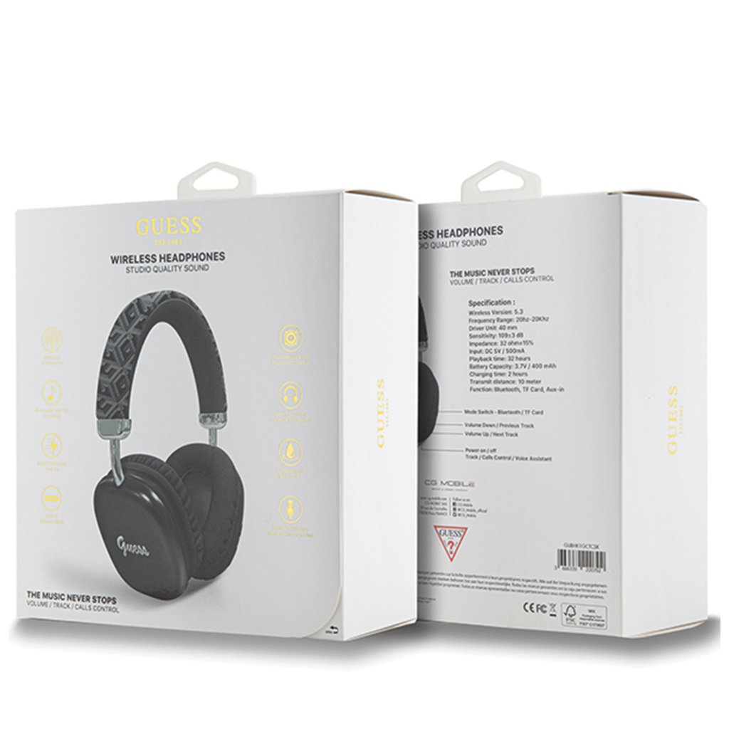 Guess Wireless Headphones GCUBE Metallic Script Logo Over-ear Headset čierna