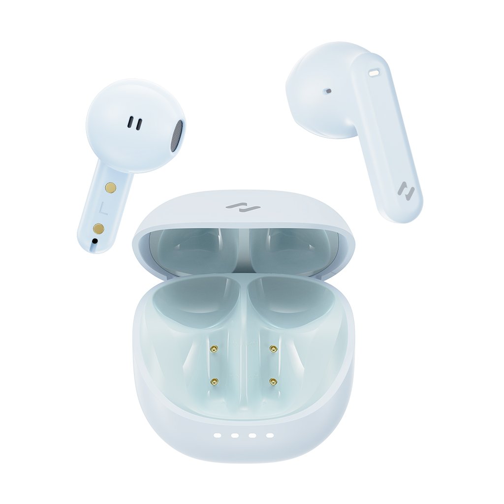 Havit TW931 zaujmú svojím minimalistickým a sofistikovaným dizajnom v jemnej modrej farbe. Nabíjacie puzdro má kompaktný, zaoblený tvar pripomínajúci oblázek, ktorý sa pohodlne zmestí do vrecka a je príjemný na dotyk vďaka svojmu matnému povrchu. Na prednej strane puzdra nájdete štyri LED indikátory, ktoré vás informujú o stave nabitia. Samotné slúchadlá sú typu "in-ear" s krátkou stopkou, čo zaručuje pohodlné a bezpečné usadenie v uchu aj pri dlhšom nosení. Rovnako ako puzdro, aj slúchadlá majú elegantný matný povrch a sú zdobené decentným logom Havit. Nabíjanie puzdra prebieha prostredníctvom moderného USB-C portu, umiestneného na spodnej strane.