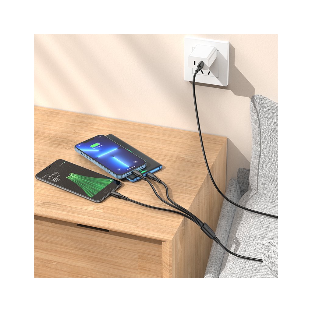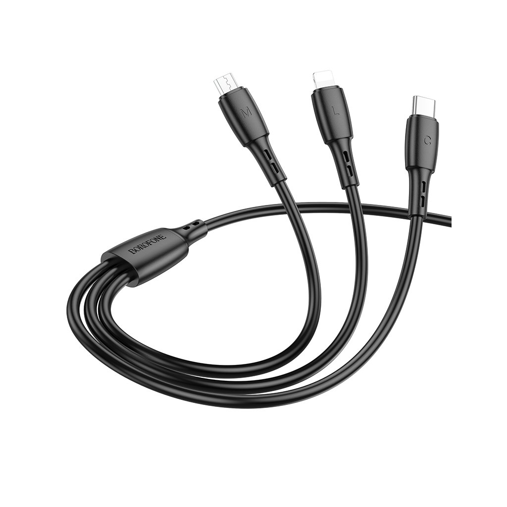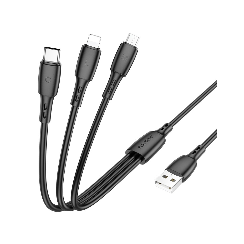 Dátový kábel Borofone BX71 3v1 USB-C, microUSB, Lightning 2A 1m čierny