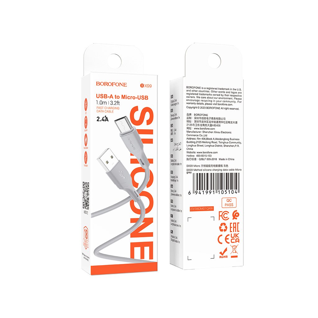 Dátový kábel Borofone BX99 Method - USB na MicroUSB - 2,4A 1 meter sivý