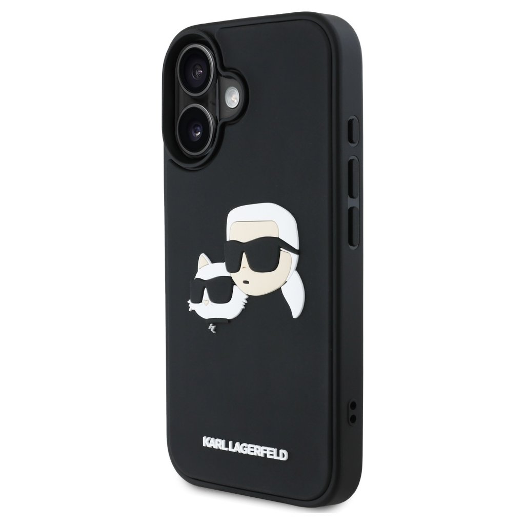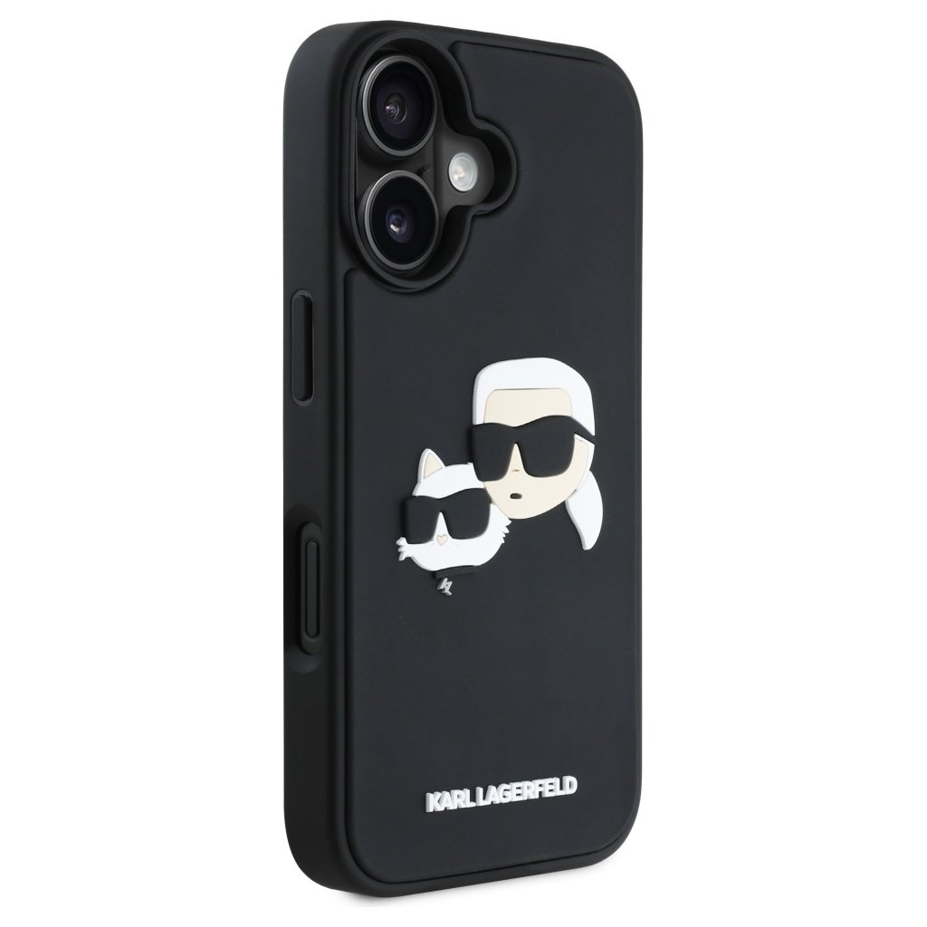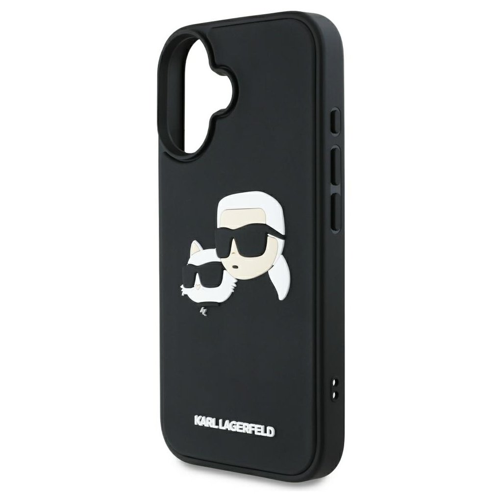 Karl Lagerfeld 3D Design iPhone 16 čierny obal Rubber Karl&Choupette