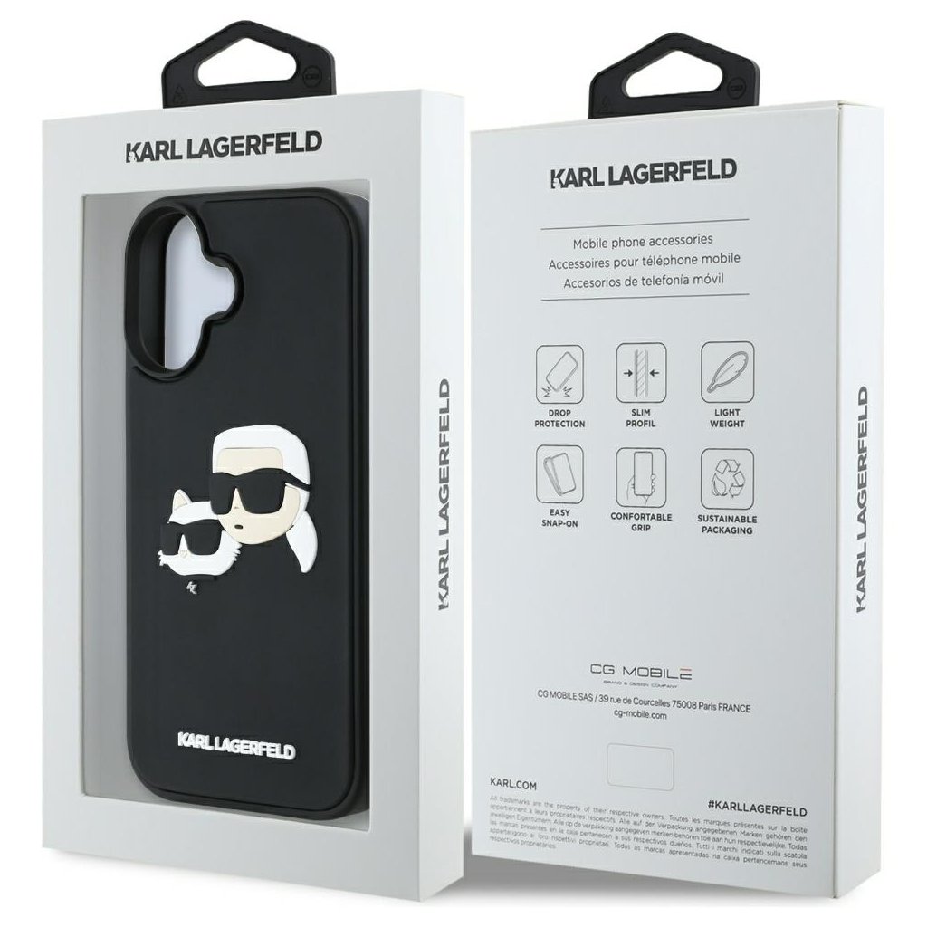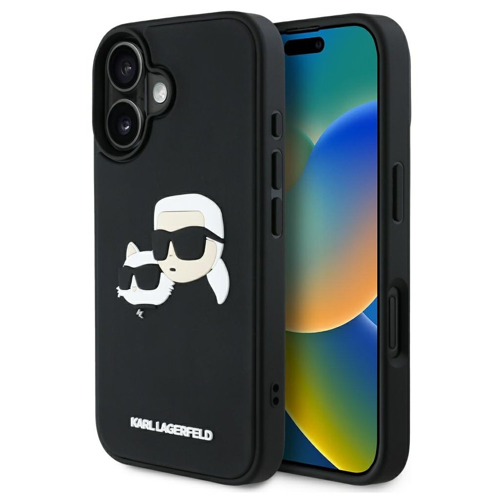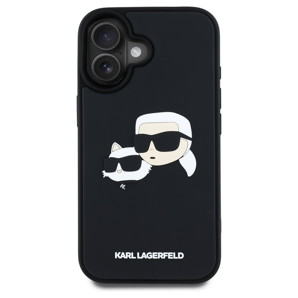 Karl Lagerfeld 3D Design iPhone 16 čierny obal Rubber Karl&Choupette