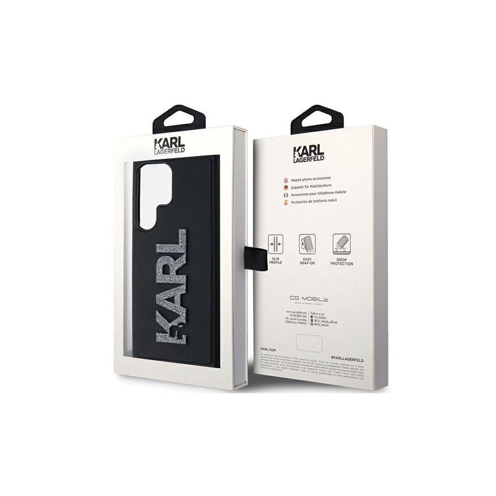 Karl Lagerfeld 3D Design Samsung Galaxy S24 Ultra čierne trblietavé logo