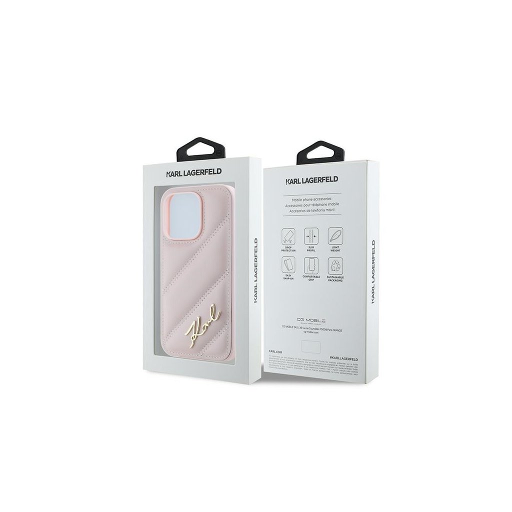 Karl Lagerfeld Diagonal Quilted Script iPhone 14 Pro Max ružový