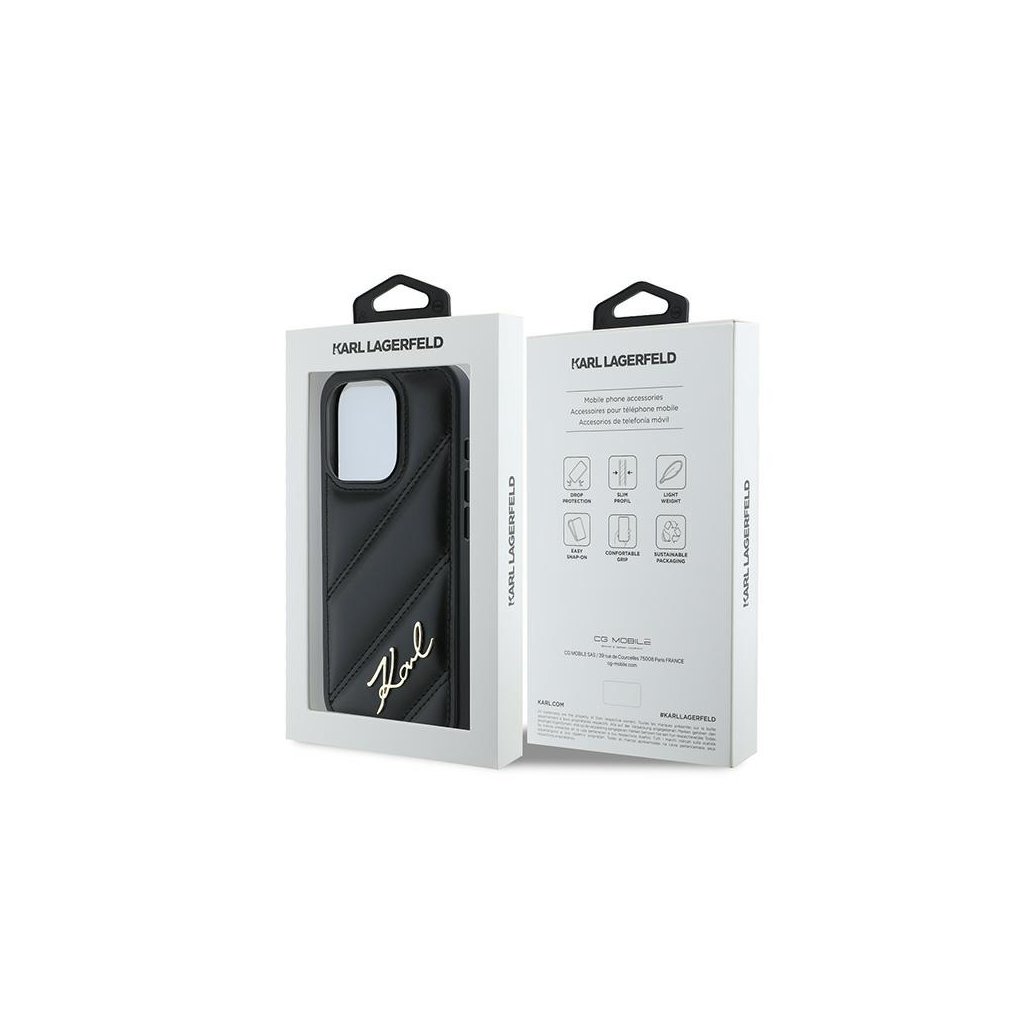Karl Lagerfeld Diagonal Quilted Script iPhone 15 Pro čierny