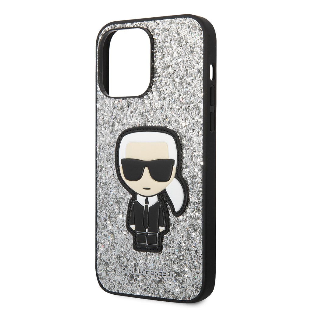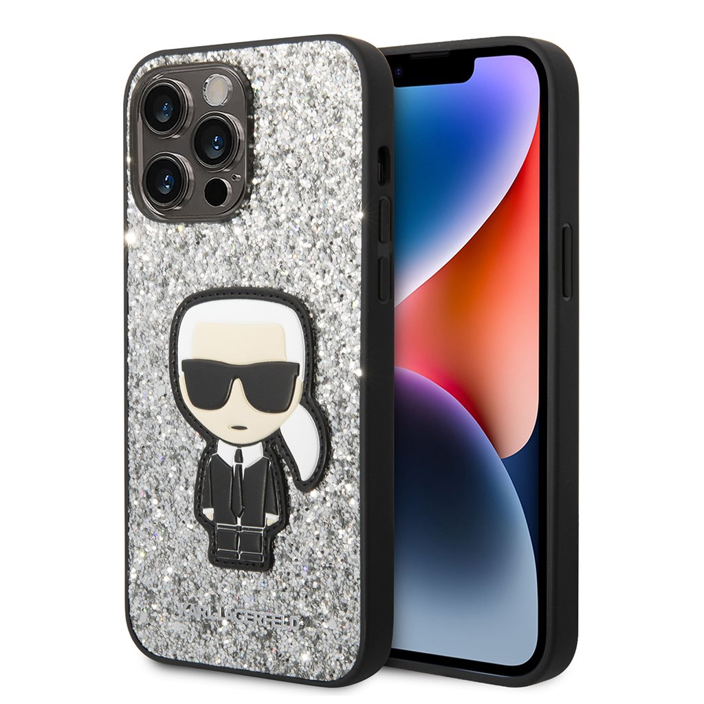 Karl Lagerfeld Hardcase Glitter iPhone 14 Pro Max strieborné vločky Ikonik
