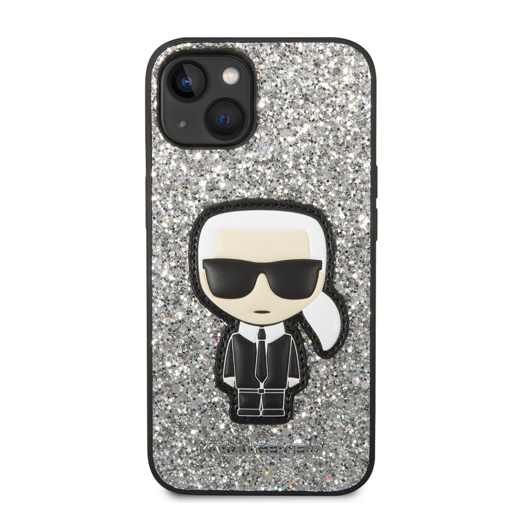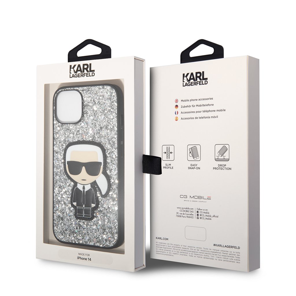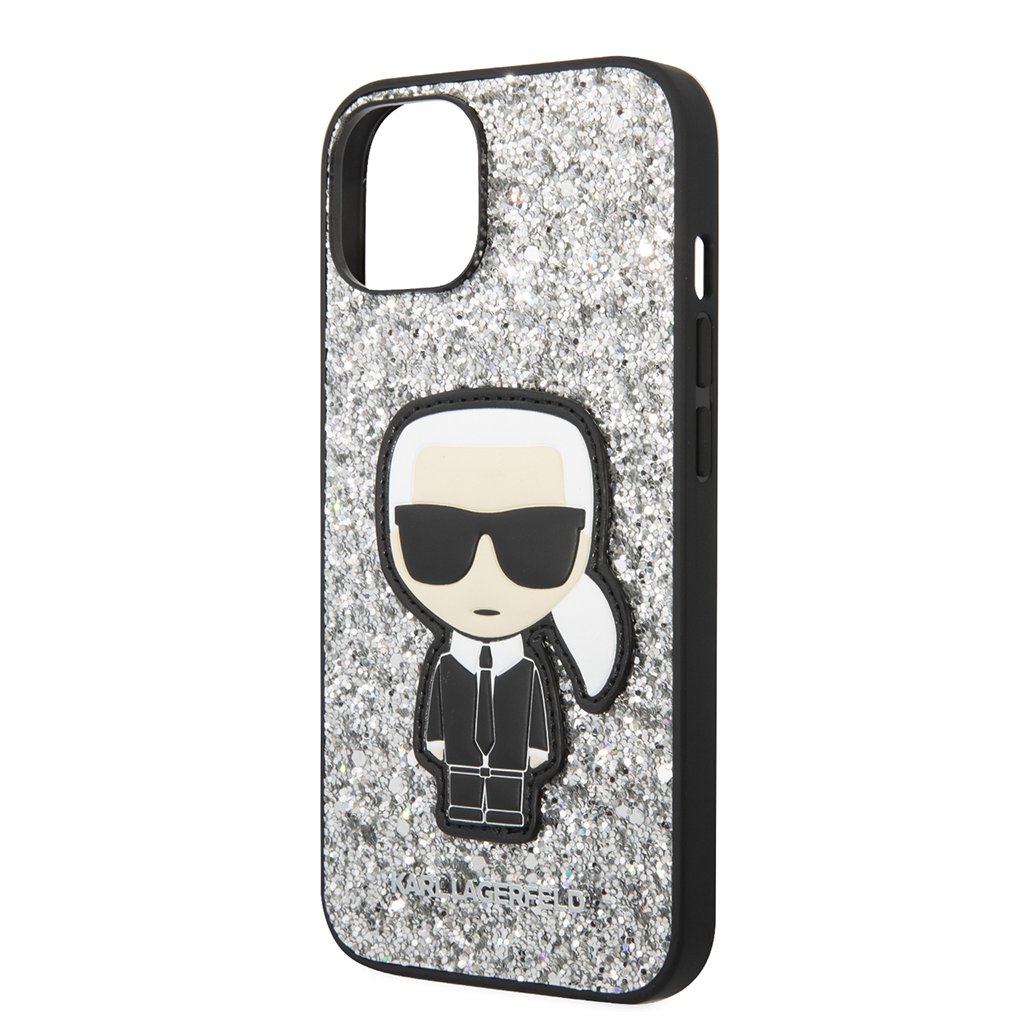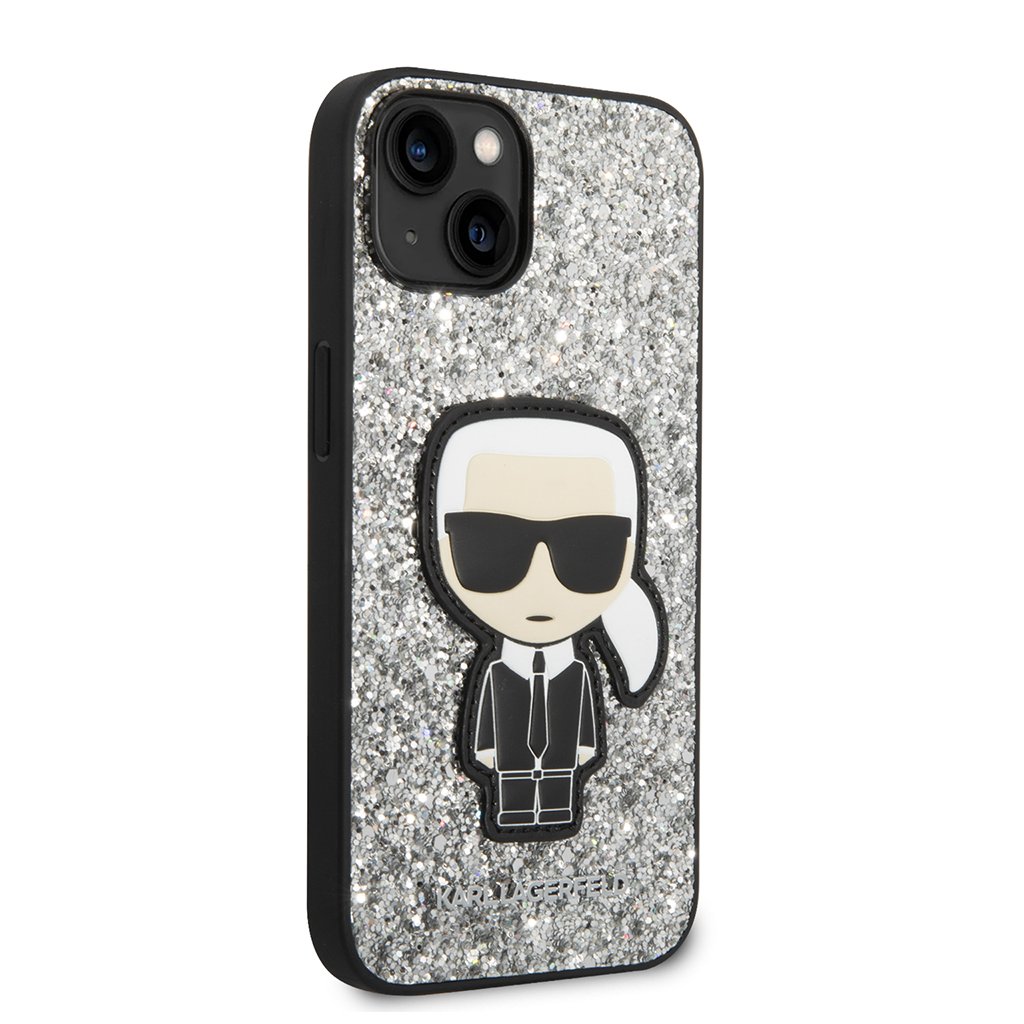 Karl Lagerfeld Hardcase Glitter iPhone 14 Strieborné Flitre Ikonik