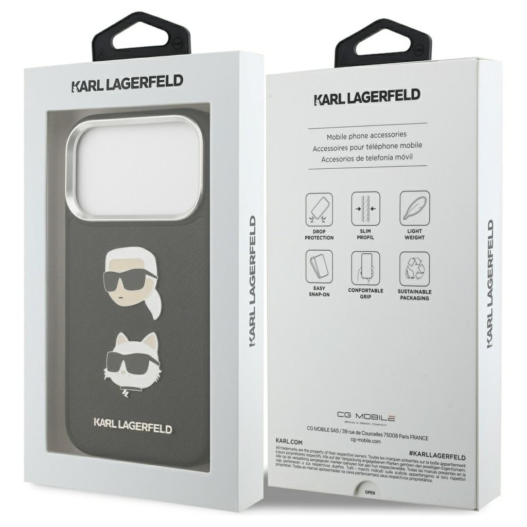 Karl Lagerfeld Hardcase Grained K&C Heads Pins and Logo iPhone 17 Pro čierna