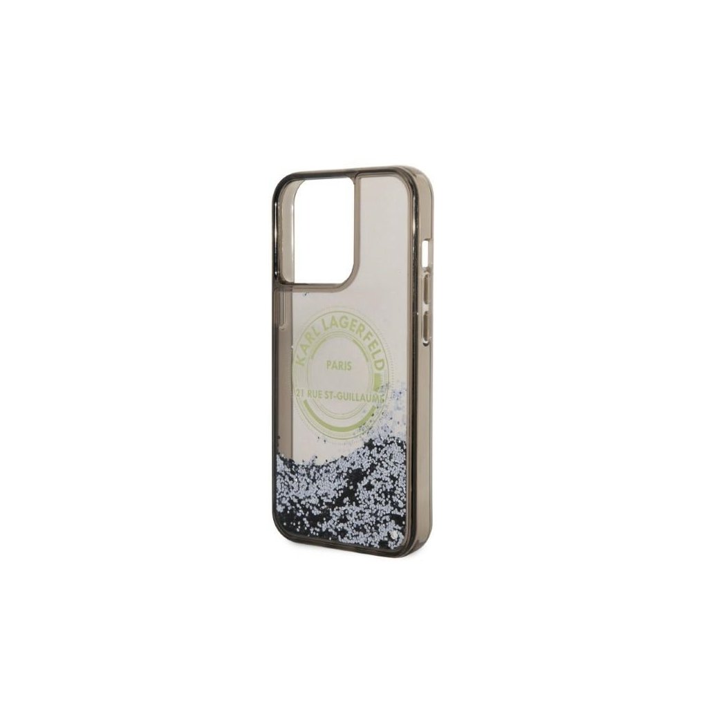 Kryt sa pýši priehľadným dizajnom, ktorý nechá vyniknúť pôvodnú krásu vášho telefónu. Jeho dominantou sú však tekuté trblietky v nádhernom ružovo zlatom odtieni, ktoré sa pri pohybe telefónu dynamicky prelievajú a vytvárajú fascinujúci vizuálny efekt. Tento detail premení váš iPhone na pútavý módny doplnok. Nechýba ani decentné, ale rozpoznateľné logo Karla Lagerfelda, ktoré podčiarkuje exkluzivitu produktu.