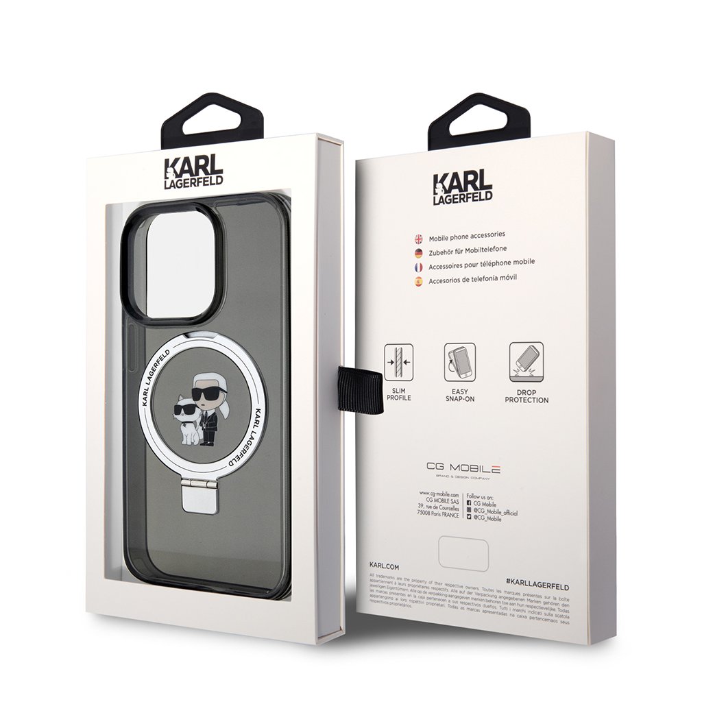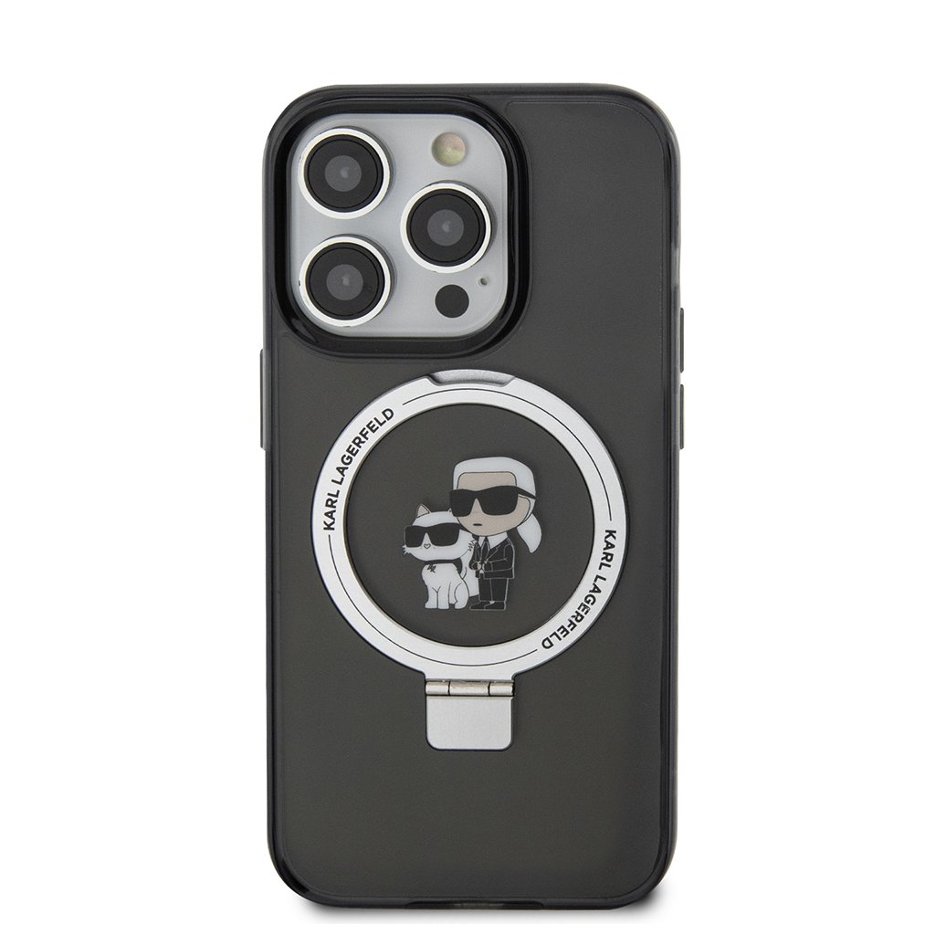 Karl Lagerfeld Hardcase Ring Stand Magsafe iPhone 15 Pro Karl&Choupette čierna