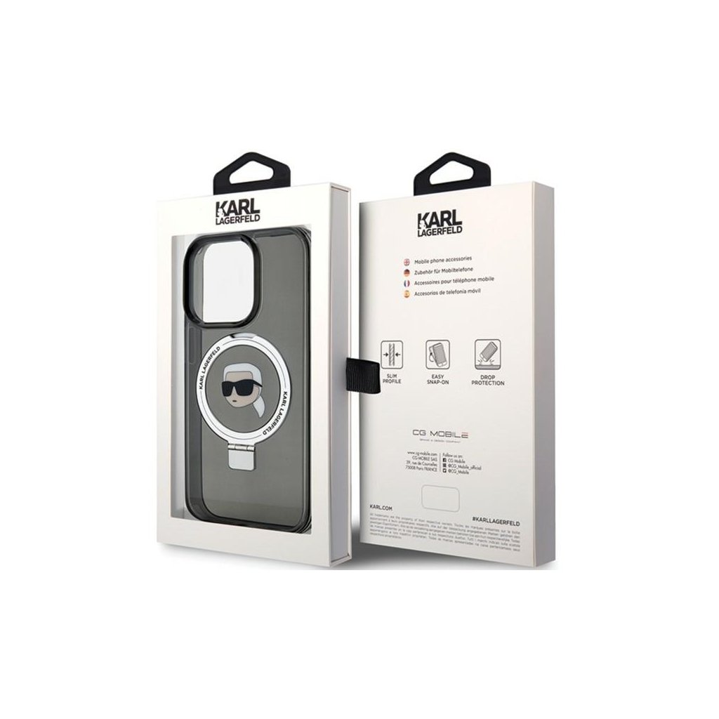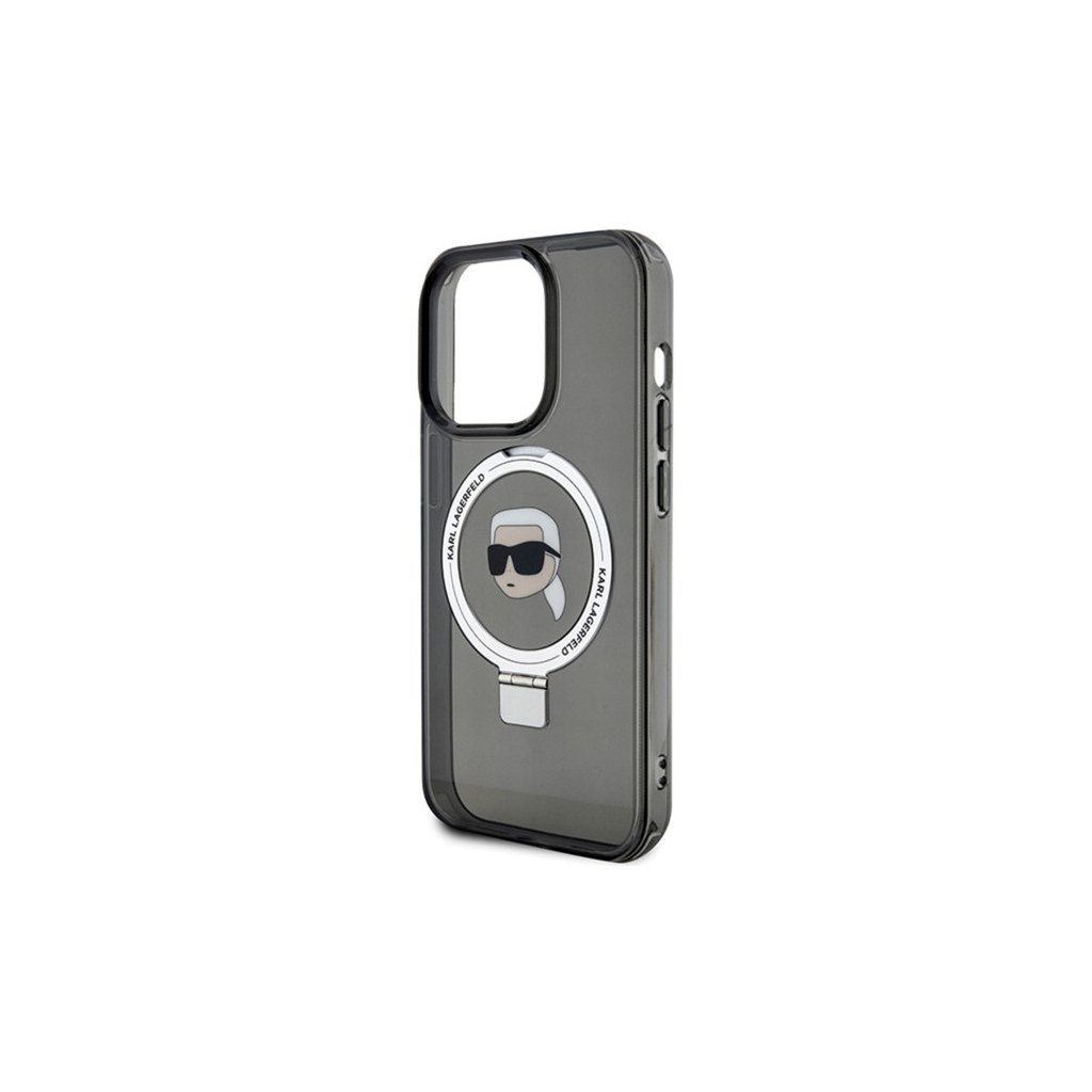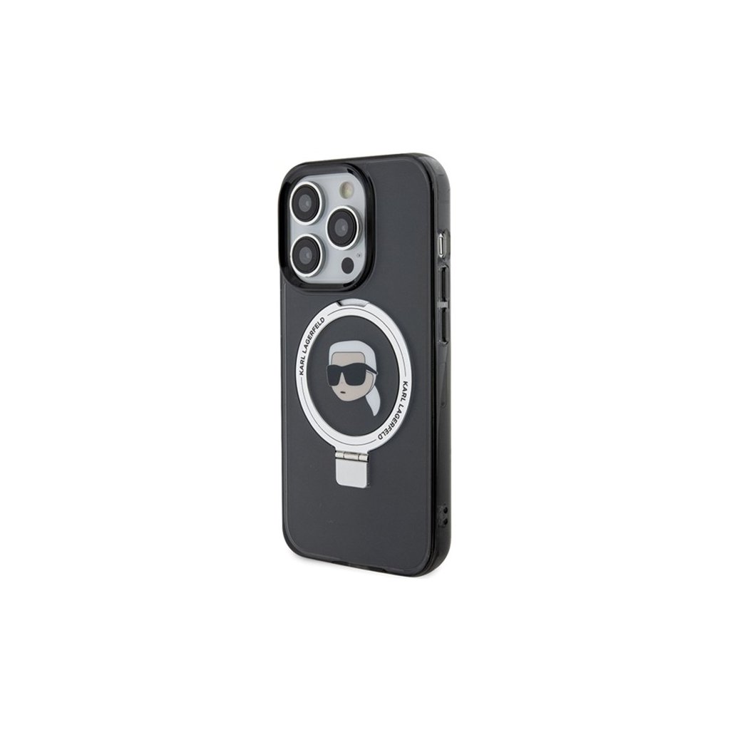 Karl Lagerfeld Hardcase Ring Stand MagSafe iPhone 15 Pro Karl Head čierna